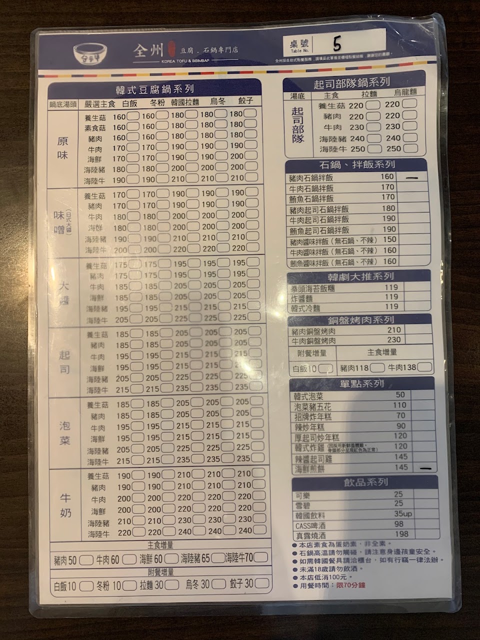 2024最新在地推薦餐廳的菜單_全州韓二石 豆腐·石鍋專門店 朴子店的菜單、圖片