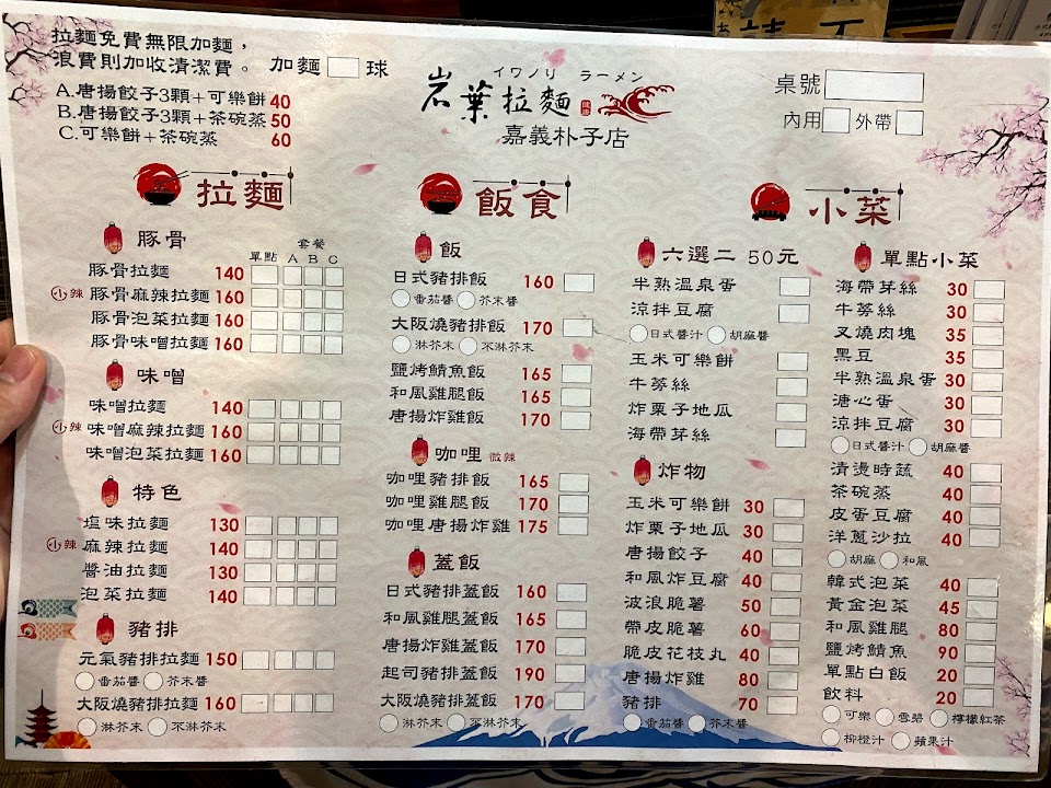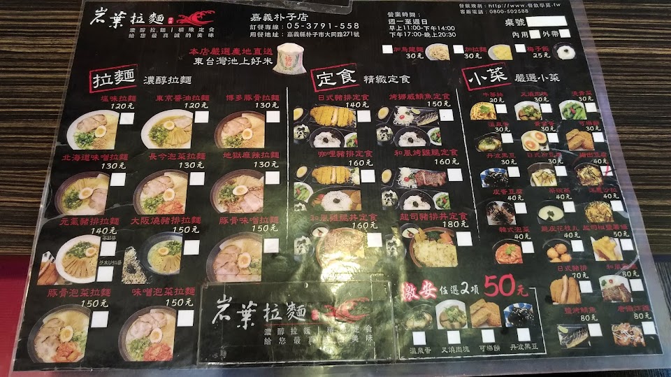2024最新在地推薦餐廳的菜單_岩葉拉麵 朴子店 (公休時間請看fb粉專)的菜單、圖片