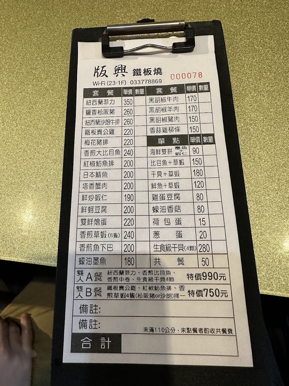 建國路上,好吃的鐵板燒,就是開車不方便停,要找停車場。 服務 內用 餐點:5 服務:5 氣氛:5