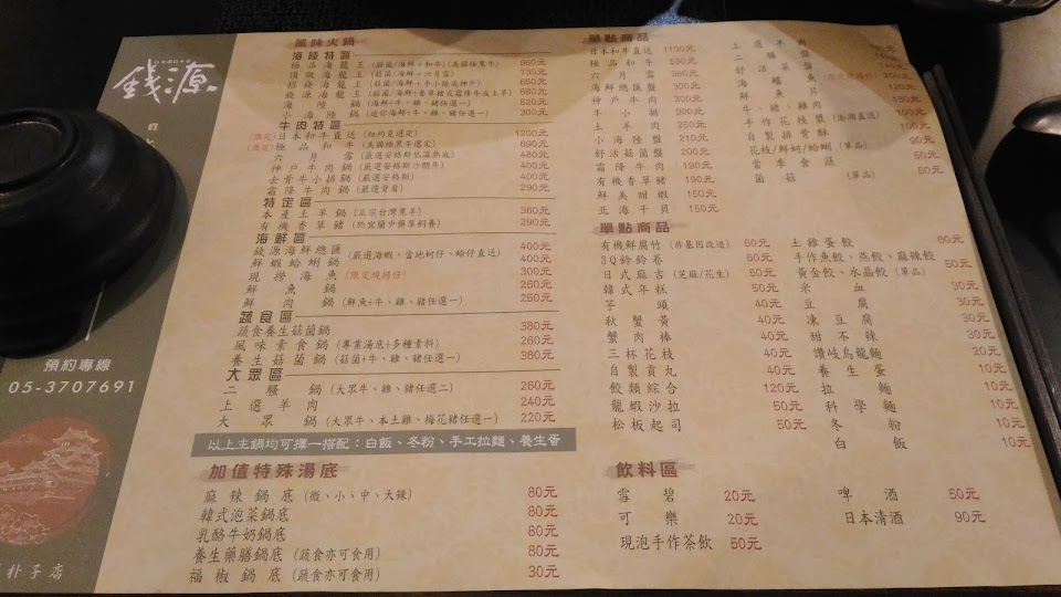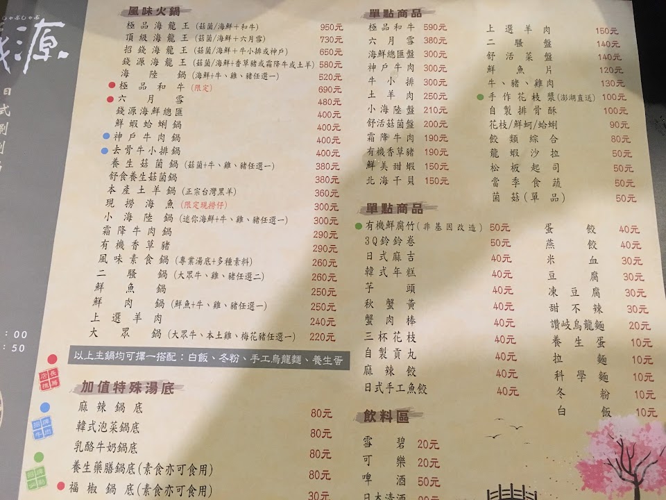 2024最新在地推薦餐廳的菜單_錢源日式涮涮鍋的菜單、圖片