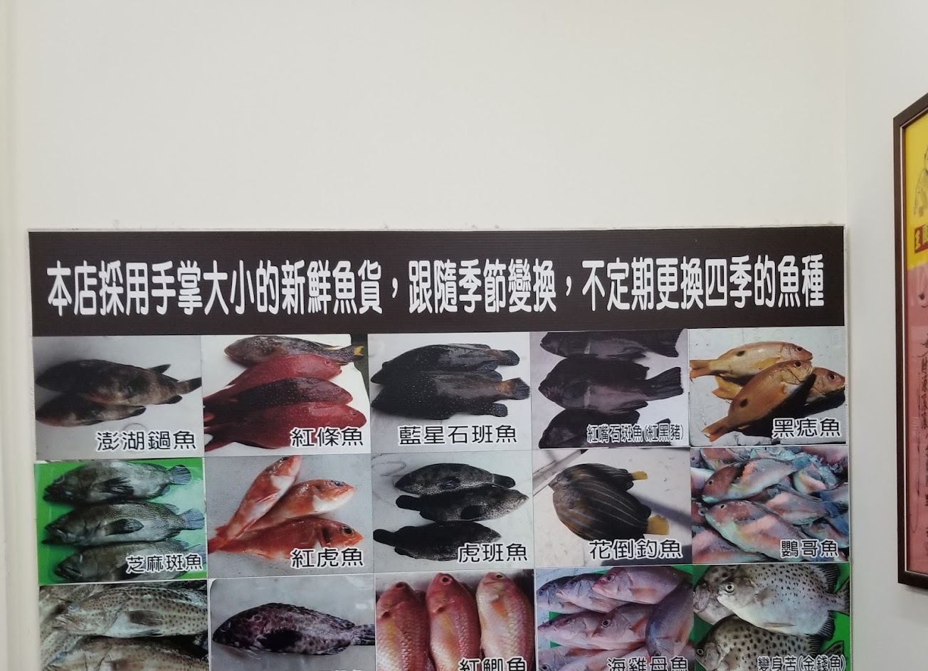 鮮魚湯價錢寫在白板上很清楚