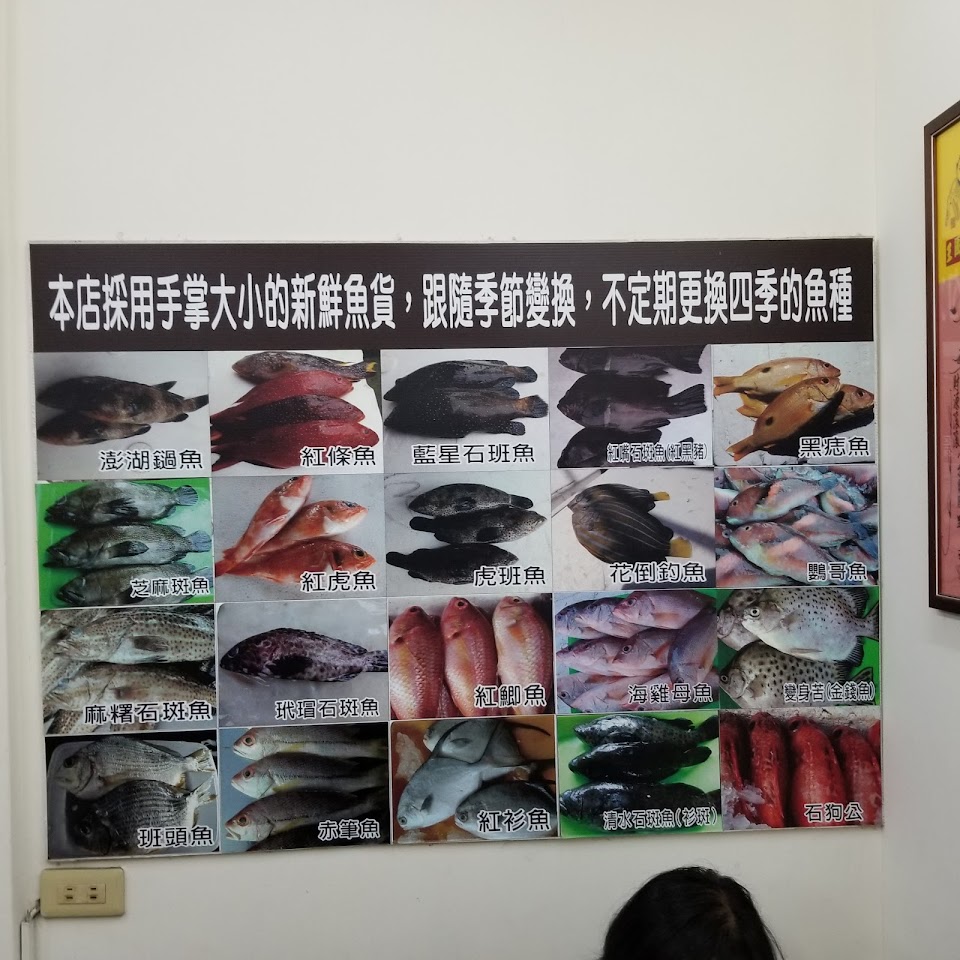 店面不大,內用沒有冷氣,環境還算乾淨,主打海魚料理,店內貼滿了魚的照片,附近不好停車,沒有兒童用椅,餐點簡單口味家常,適合不怕熱的騎機車的在地人去吃~