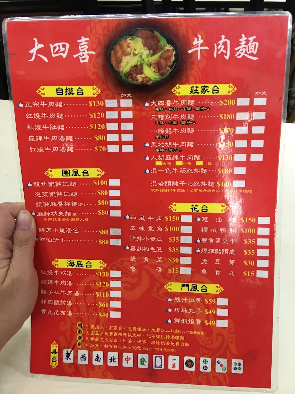 2024最新在地推薦餐廳的菜單_中正大四喜牛肉麵(總店)端午節正常營業的菜單、圖片