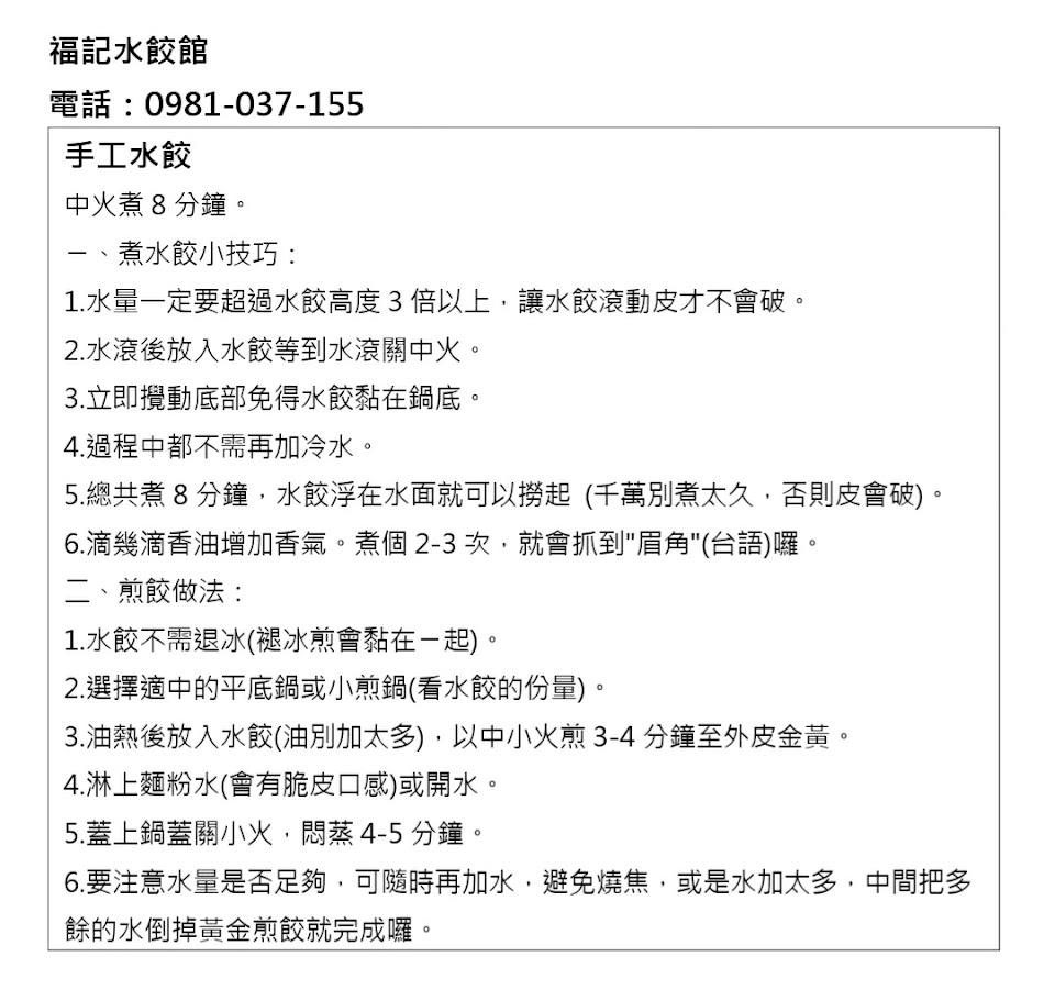 2024最新在地推薦餐廳的菜單_福記水餃館的菜單、圖片