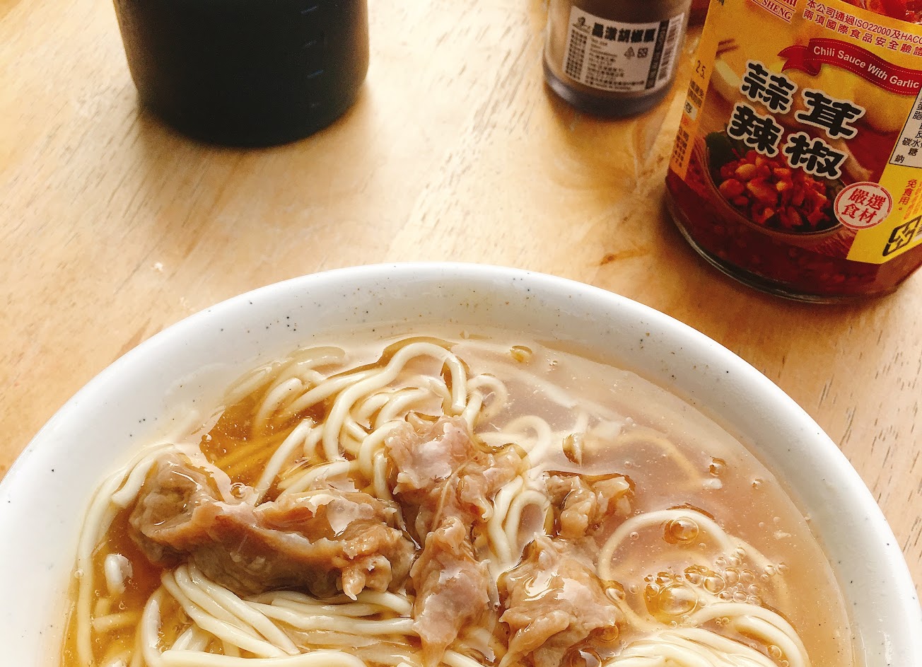 肉羹麵口味清淡適合早餐 搭配網絲卷沾上芥末醬油還不錯