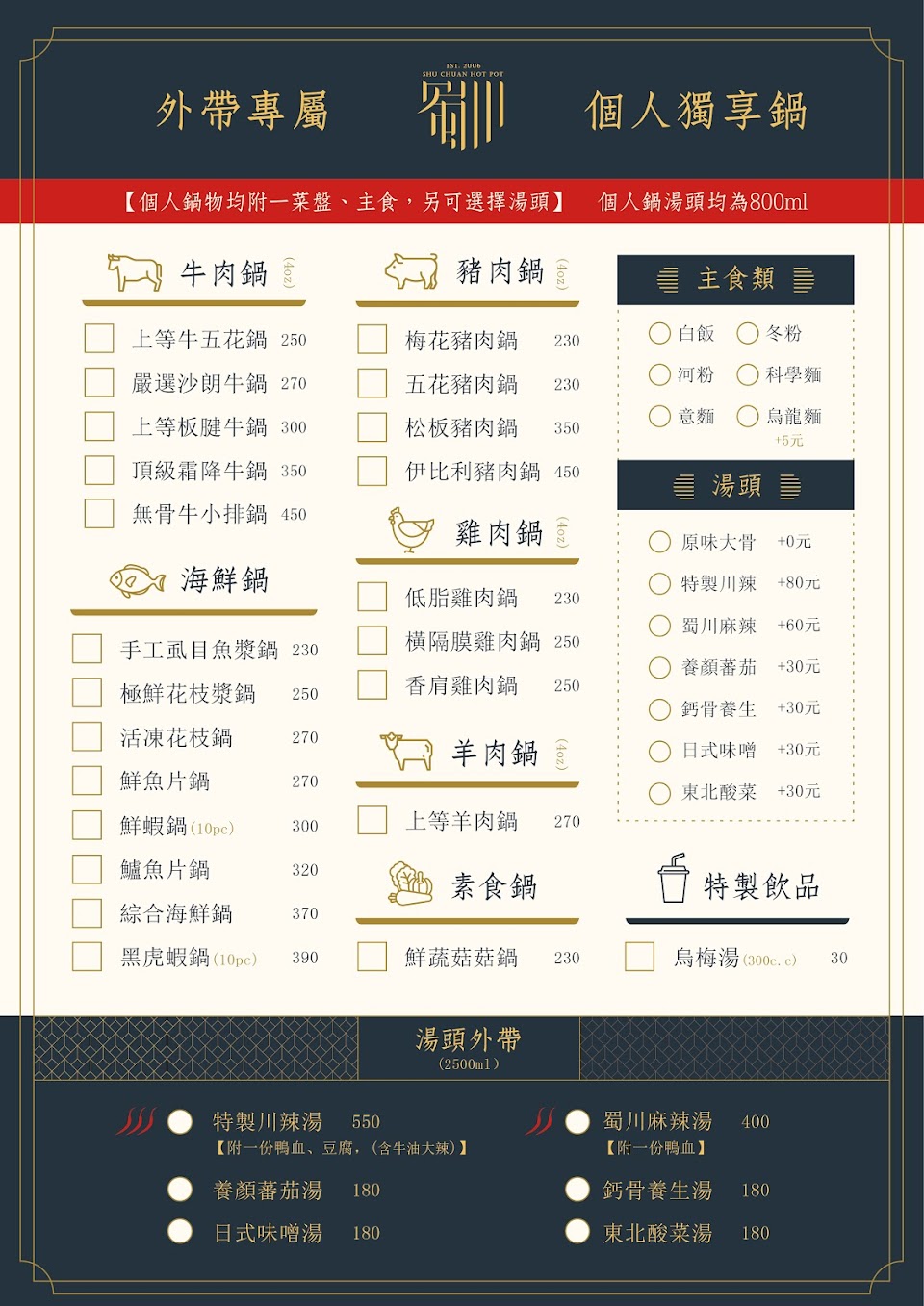 2024最新在地推薦餐廳的菜單_蜀川麻辣鴛鴦鍋的菜單、圖片