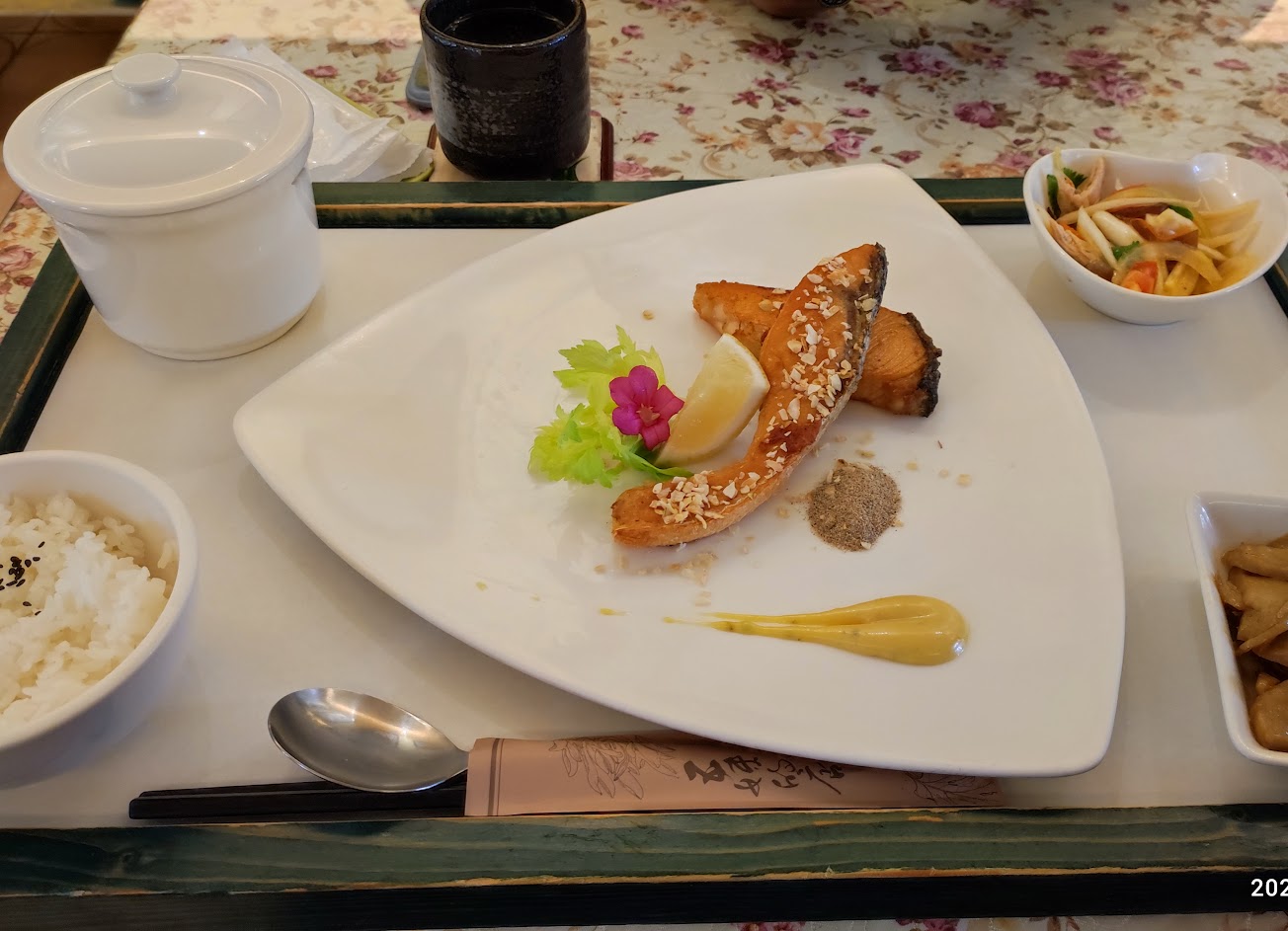 鮭魚套餐份量對男生來說真的不太夠吃,雖然白飯可以免費續,但是沒什麼東西能配,附餐現打芭樂汁很濃郁!