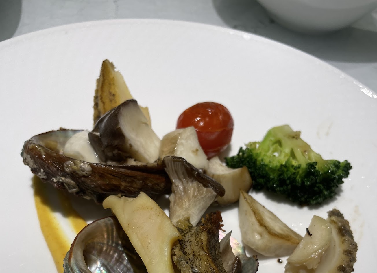 整體的話覺得鐵板師傅做的前菜炒菇,跟主餐白蘭地鴨胸好吃,其他餐點我都覺得還好。
