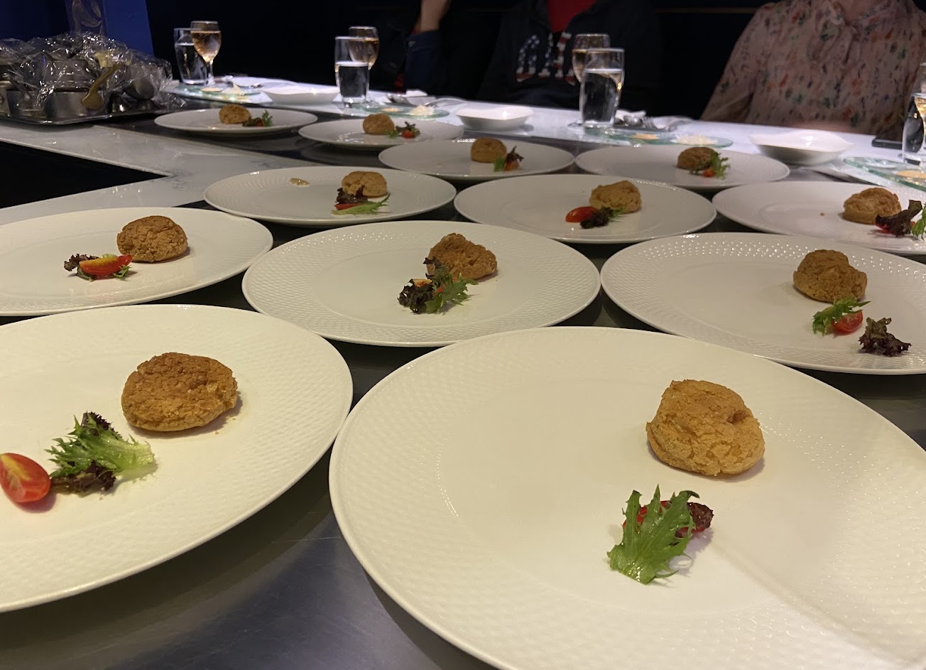 只是我沒看錯的話,好像有位小姐的主餐沒有吃完,鐵板師傅有發現,就問她餐點可以嗎?她說要再熟一點,師傅就幫她把碗裡的再炒熟一點。 可是熟度應該要一開始試吃後再放進碗裡吧,雖然有盤子,就是把主餐自己從鐵板燒的碗裡夾到自己的盤子享用,但問題是我們都用叉子叉到自己的盤子,等於說是吃過,又拿到共用的鐵盤炒,炒具也是共用,這樣感覺不太衛生呢。
