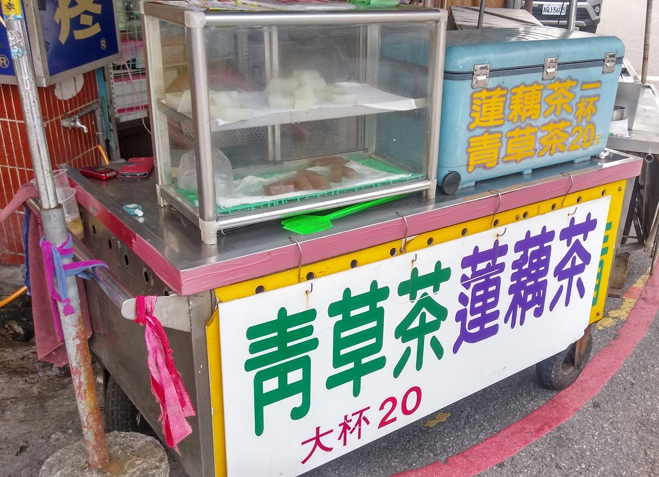 今天買了100元芋頭餅 與兩塊不知道什麼東西的甜點【一個是冬瓜糖口味的菜燕,這個還好。】還有一杯青草茶。但令我最吃驚的是白白的那個塊狀甜點。意外的好吃。而且很便宜,一塊才5元。吃完後很懊悔沒多買幾塊。因為已離開那個地方了。很推這間店哦!芋頭餅是父母最喜歡吃的古早味。