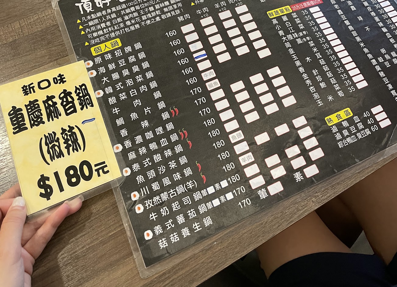 最便宜的鍋160,料算多,有自助吧可以吃冰、肉燥飯跟麵