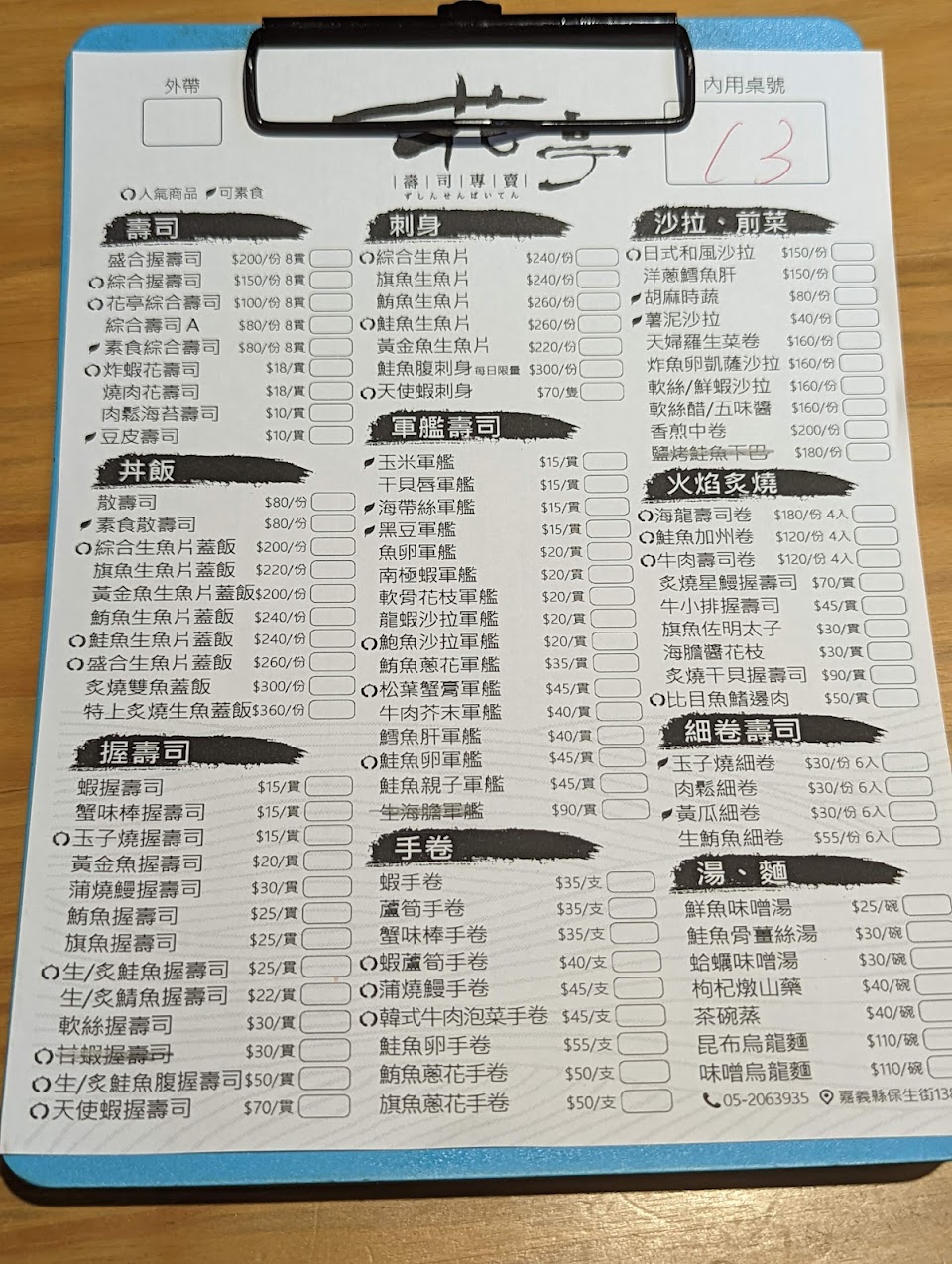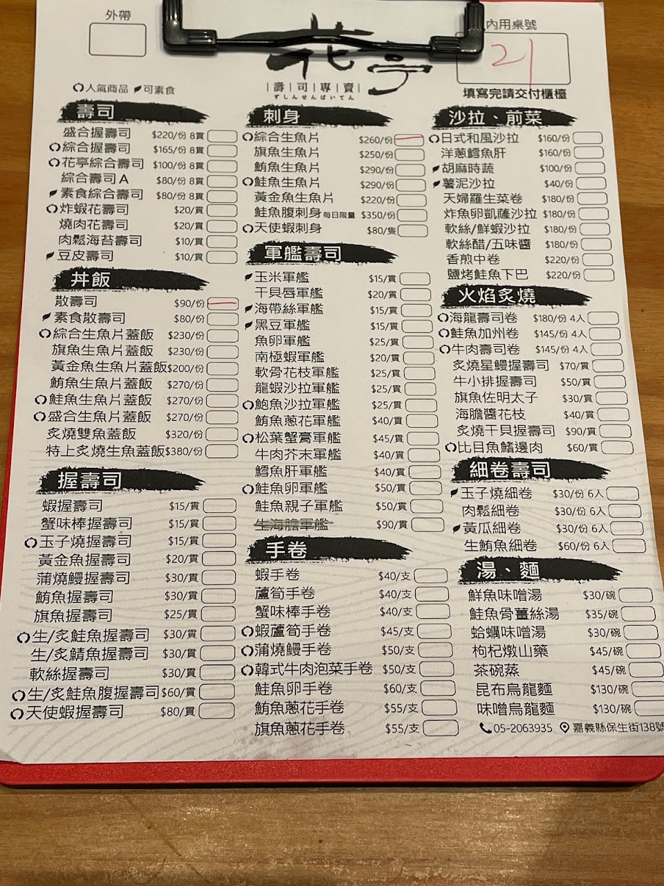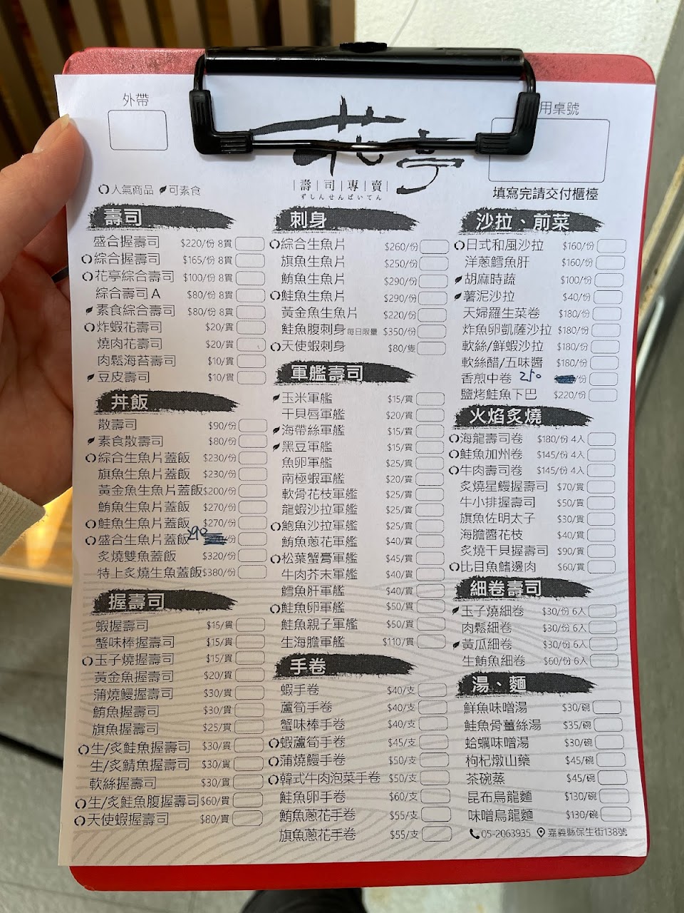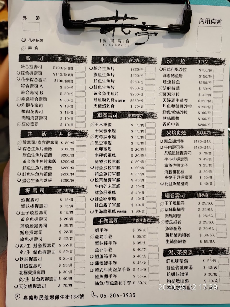 2024最新在地推薦餐廳的菜單_花亭壽司專賣的菜單、圖片