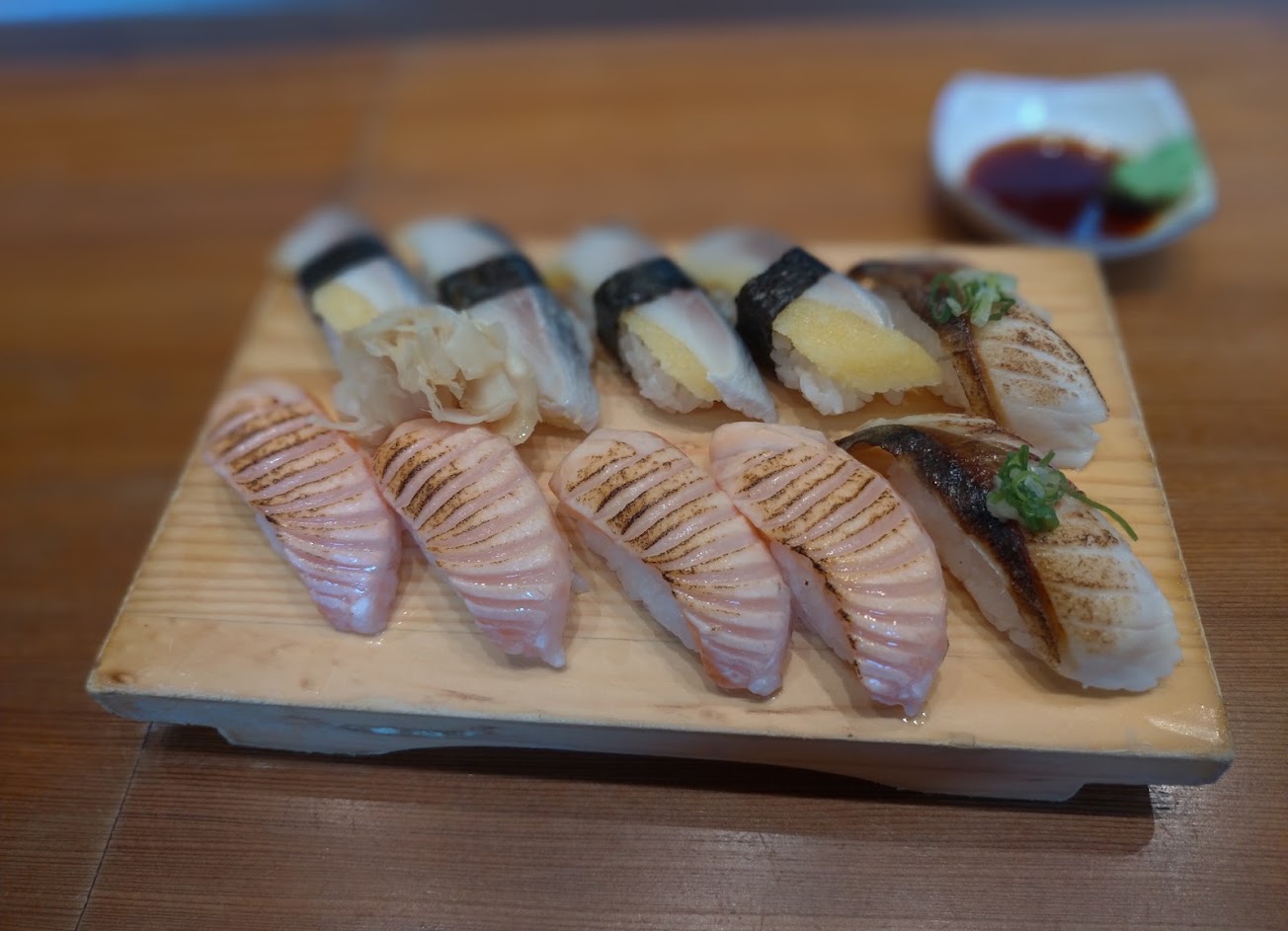 好吃,人超多可以先定位,建議可以單點一貫的嚐嚐不同的味道,等待時間就欣賞眾位師傅的手藝