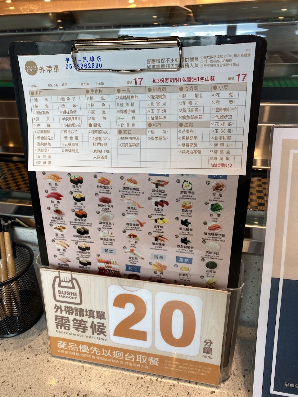 民雄唯一一家爭鮮迴轉壽司,後面有收費停車場,一小時30 元。餐廳空間舒適,容納多人的家庭座區就有七個,很適合親友聚餐,但美中不足的是只有一間廁所。