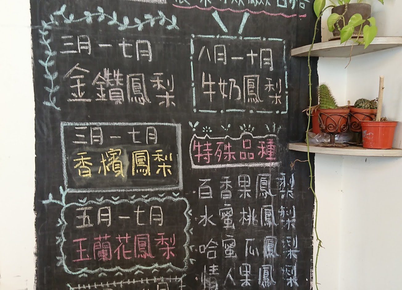 算是一個不錯的中途休息站, 也有好的產品。 但就是室內蒼蠅多了些, 鳳梨田 看不出來有什麼, 靠旁邊可愛的 貓咪插圖跟留言板取勝 …