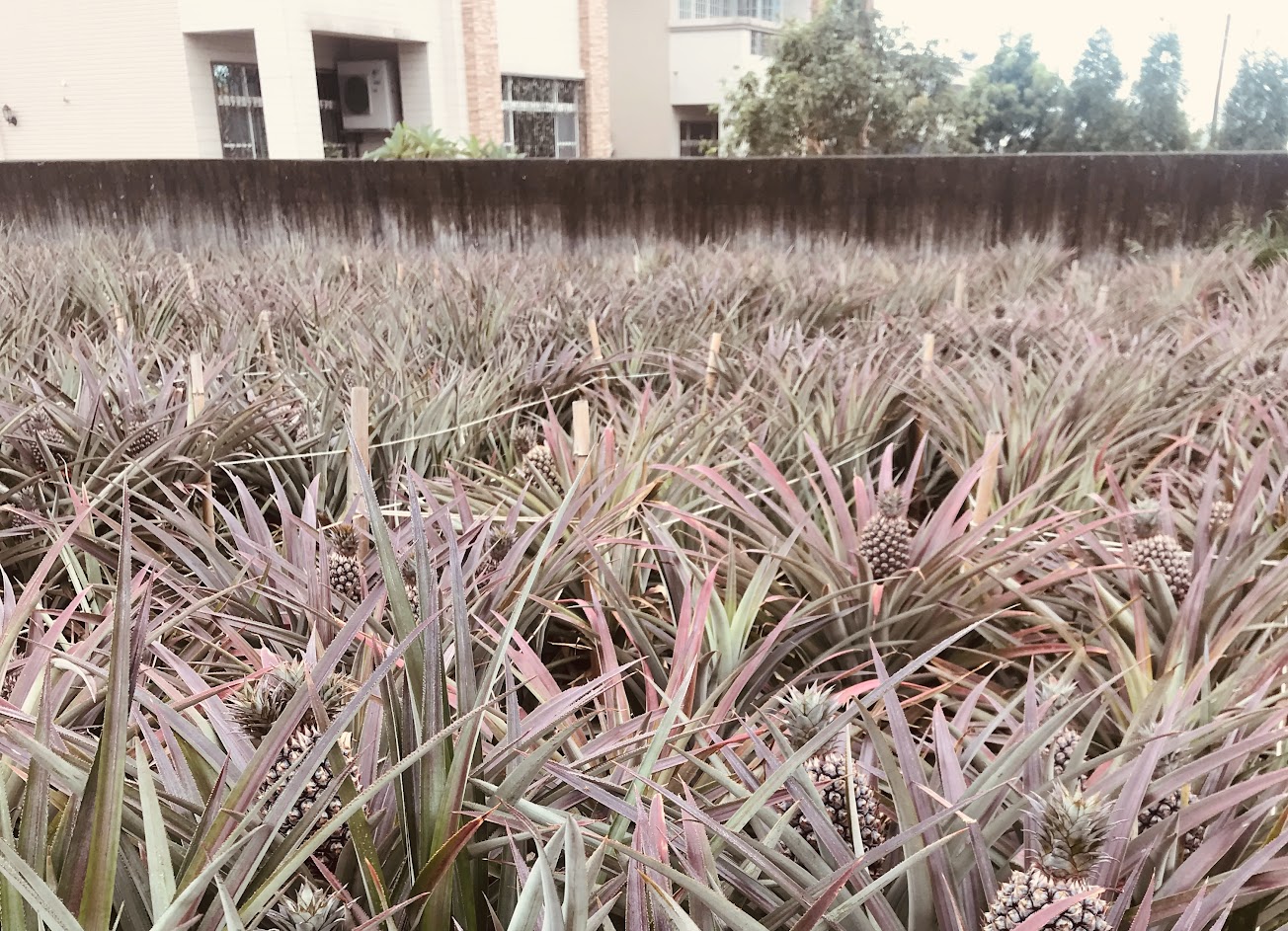 園區建物外觀鮮豔亮麗,開了一小段蜿蜒小路,映入眼簾的是各式深淺顏色不一的鳳梨田,而且附近有規劃汽機車停車格,還有專人引導,十分貼心。