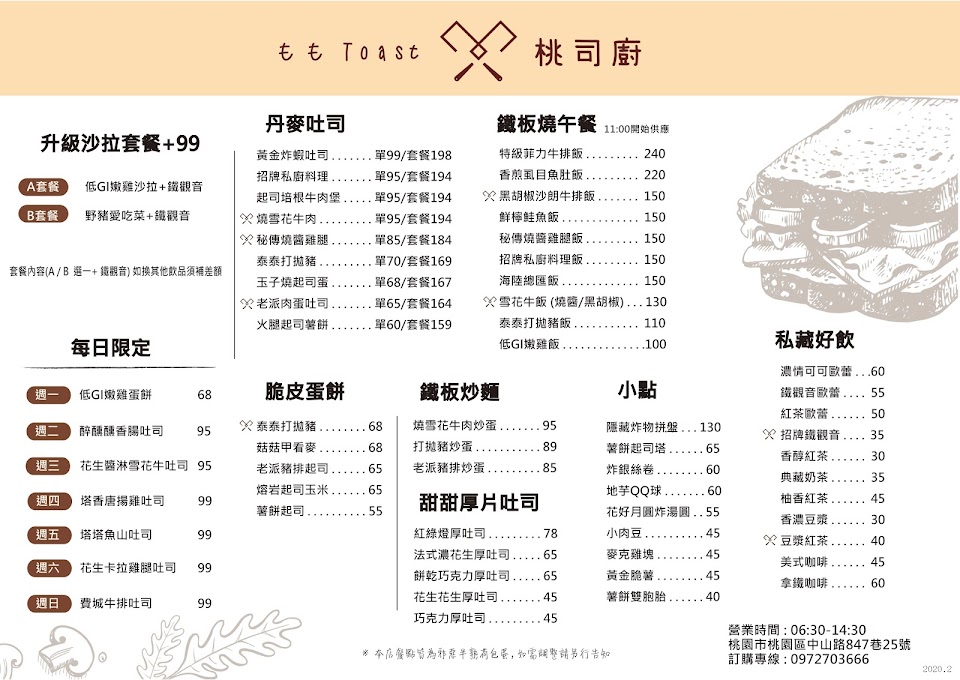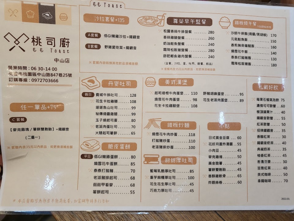 2024最新在地推薦餐廳的菜單_桃司廚 中山店-桃園早午餐|桃園早餐|桃園美食|武陵高中|藝文特區美食|鐵板早午餐|中壢早午餐|中壢美食的菜單、圖片