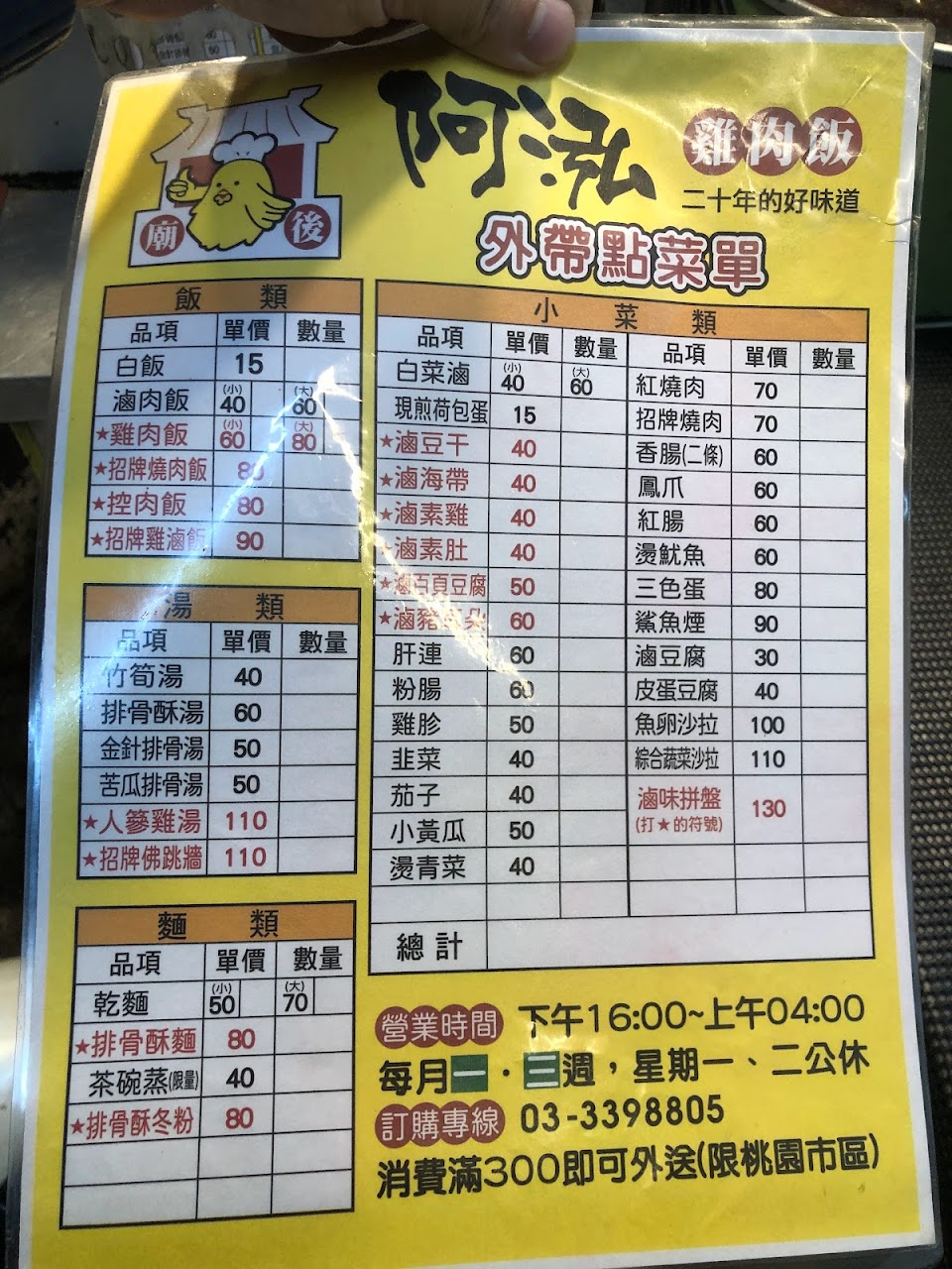 2024最新在地推薦餐廳的菜單_阿泓雞肉飯的菜單、圖片