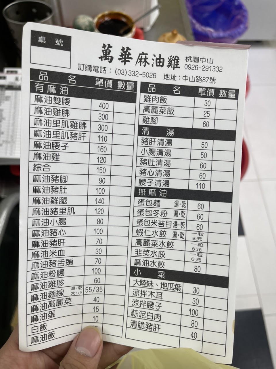 2024最新在地推薦餐廳的菜單_萬華麻油雞桃園中山店的菜單、圖片