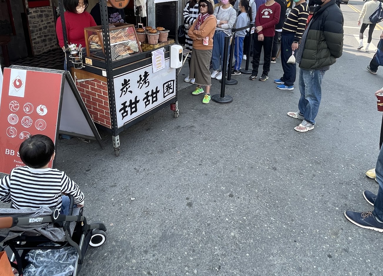 帶小孩去三隻小豬前的中繼補給站,這間的甜甜圈很好吃。雖然都在排隊,但處理速度很快,沒等很久,附近也有很多好吃的東西。