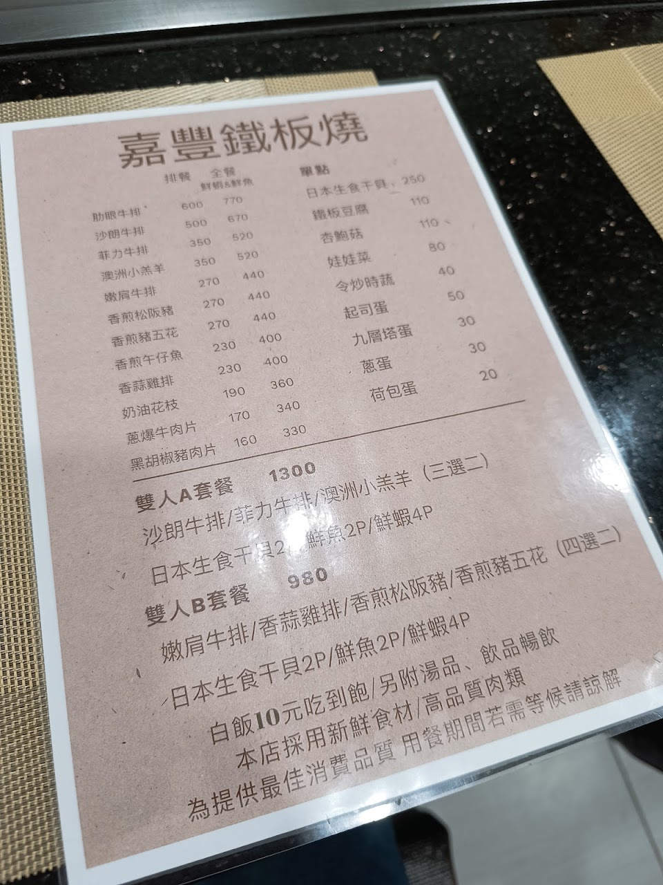 2024最新在地推薦餐廳的菜單_嘉豐鐵板燒-民雄店的菜單、圖片