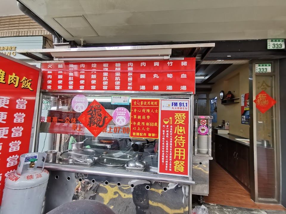 早上來用餐 看到有人來要愛心餐老闆直接裝一大碗滷肉飯+雞肉絲給對方 看到份量直接塞到便當蓋子橡皮筋快蓋不住整個爆出來