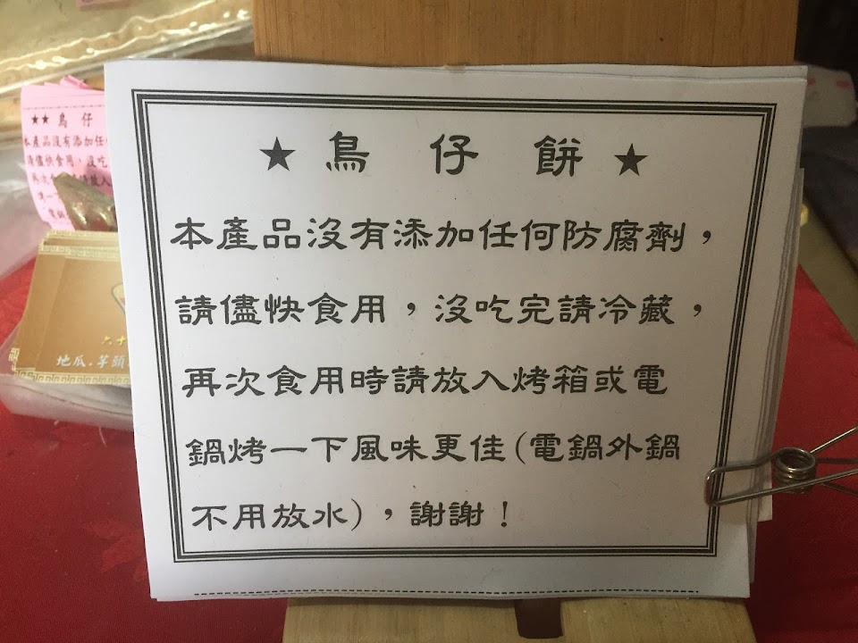 鳥仔餅當日現烤現賣,不含防腐劑,酥軟好吃。