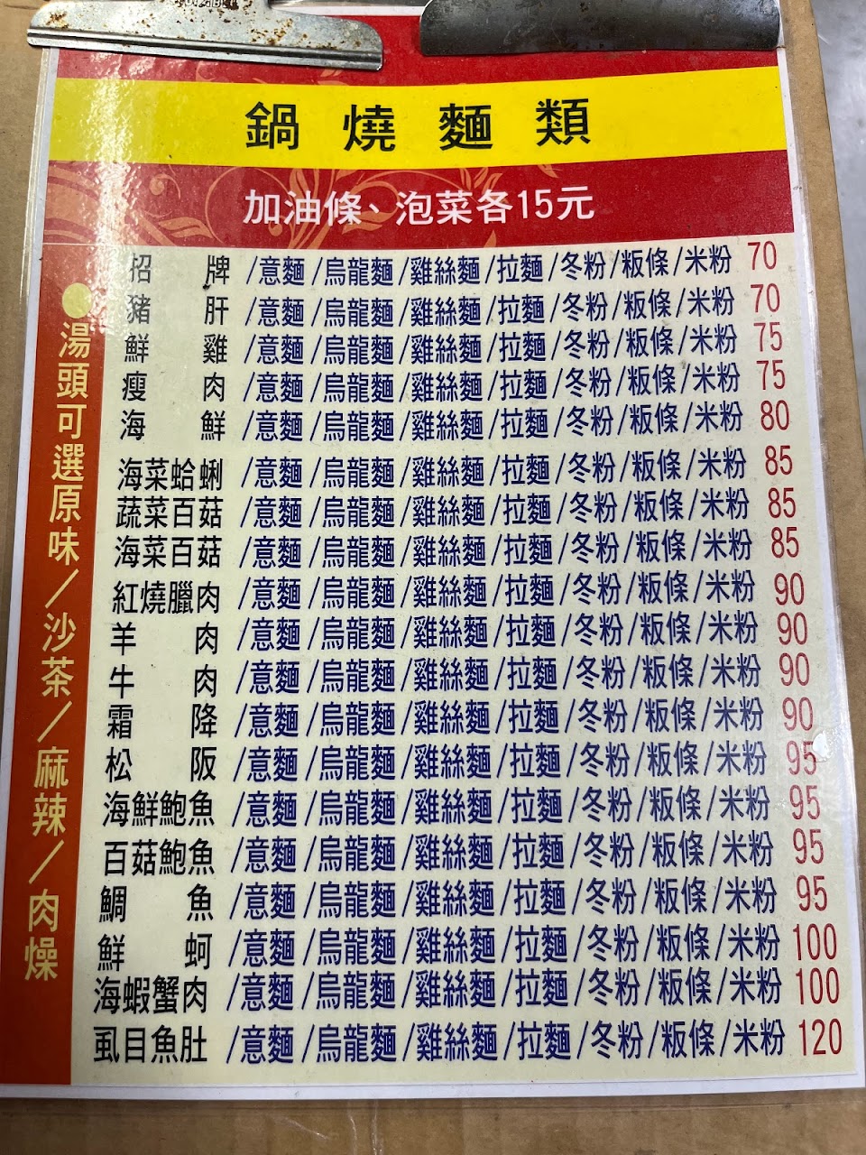 過年期間有開店家沒有幾間,剛好看到就去買了鍋燒麵回家吃。他們家湯頭有分口味,麵有很多種類還有賣粥。