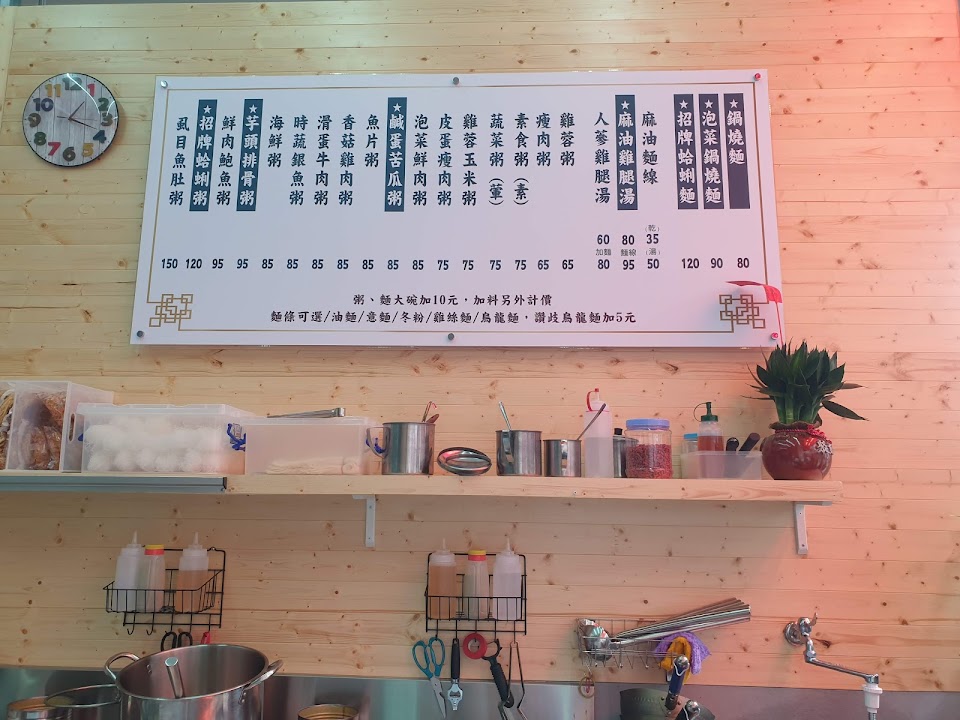 cp值超高,老闆態度超好,粥品分量超多用料十足,今天點泡菜意麵跟芋頭排骨粥都很好吃,尤其是排骨粥的排骨都沒有半點骨頭而且芋頭也超軟爛一定要來試試看!