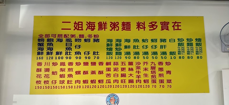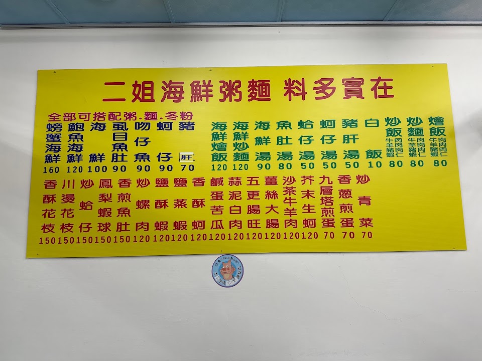 2024最新在地推薦餐廳的菜單_二姐海鮮粥麵的菜單、圖片