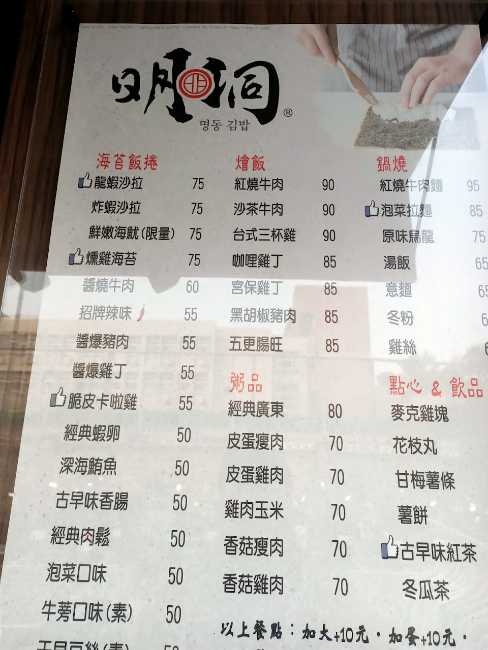 2024最新在地推薦餐廳的菜單_明洞海苔飯捲명동 김밥一中店 一中商圈台南美食推薦 台中美食推薦 輕食推薦 上班族美食推薦 皮蛋瘦肉粥 古早味紅茶的菜單、圖片