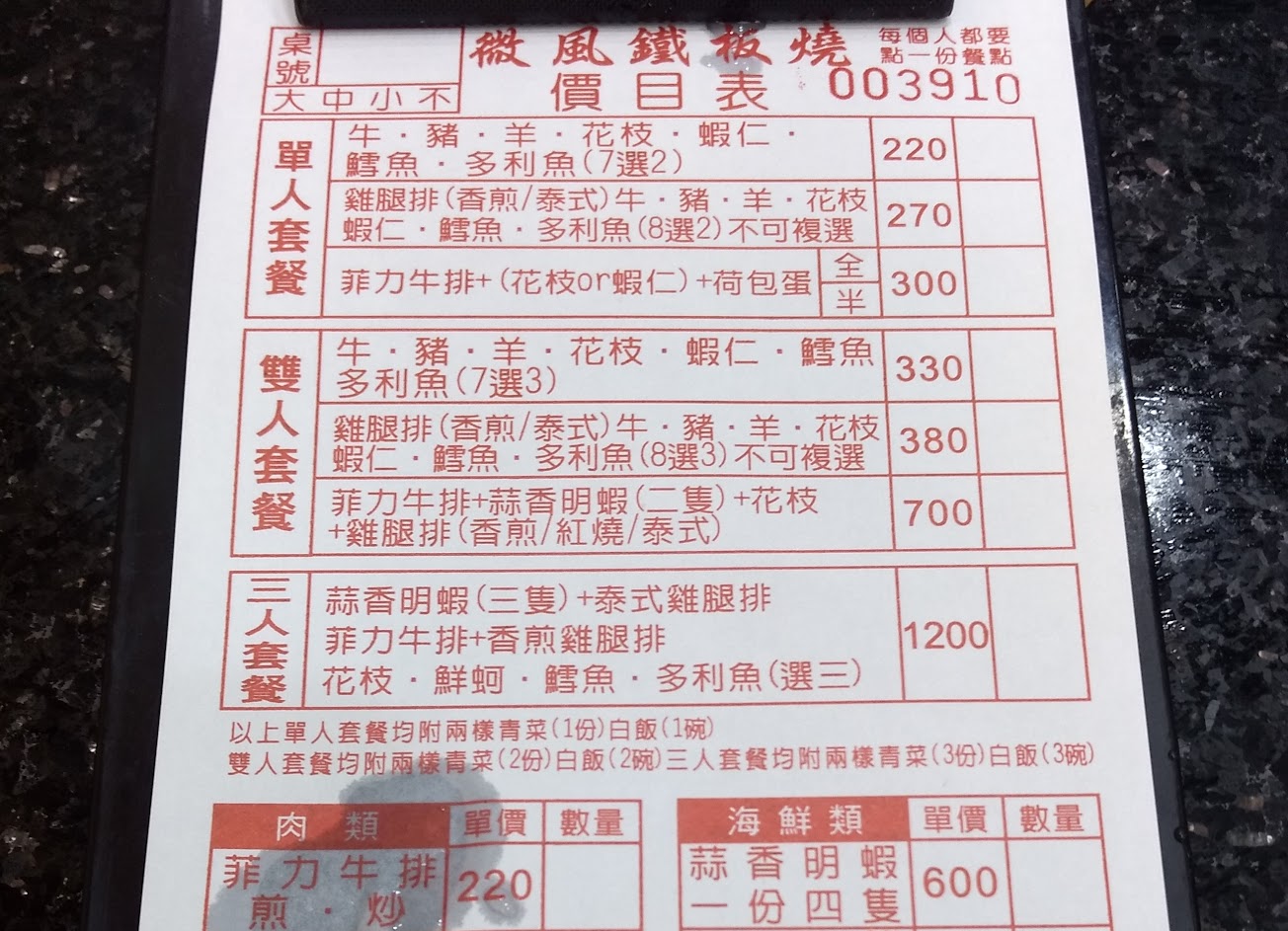 最低價格約130,口味都很不錯 基本的豬肉鐵板燒,配有兩青菜加一主菜 環境蠻乾淨的,其他還有熱湯(料蠻多的) 飯吃到飽,紅茶奶茶可以配 非常推