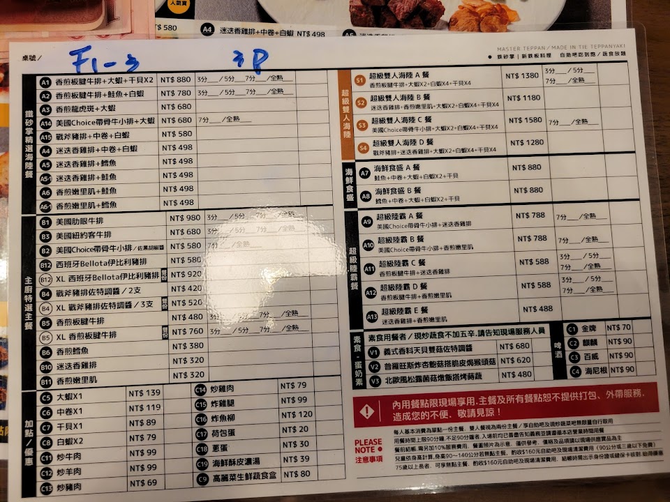 2024最新在地推薦餐廳的菜單_鉄砂掌 新鐵板料理 崇德店的菜單、圖片