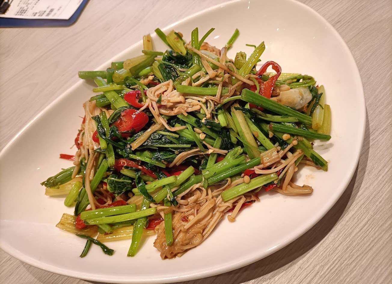 主餐餐點真的是超級普通但還算大份,反而是炒青菜(要炒醬汁)很好吃還有周邊餐點還不錯吃。