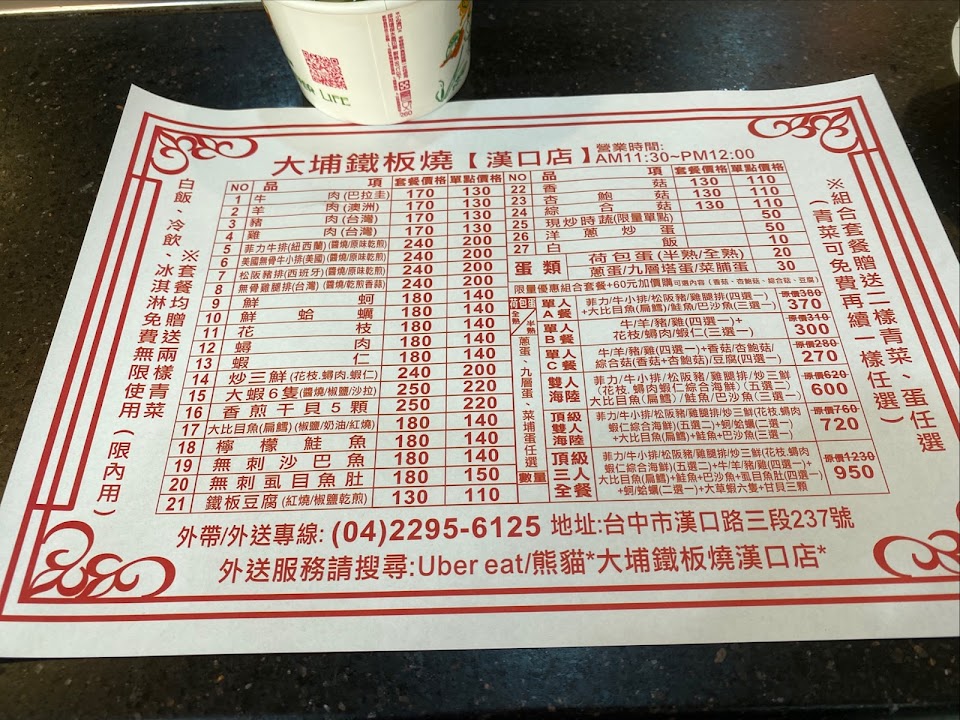 2024最新在地推薦餐廳的菜單_大埔鐵板燒 漢口店的菜單、圖片