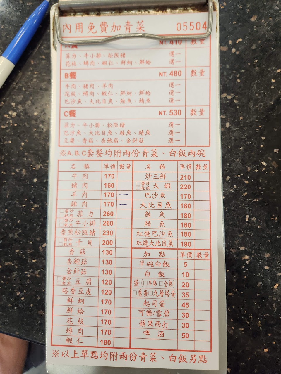此店應該是換人經營了 一樣是鐵板燒,但不是(大埔) 份量比大埔多,兩菜一主食,沒附白飯,一碗10元,白飯沒吃到飽,有清湯和飲料,清湯稍鹹,飲料部份一種 味道方面和大埔差不多,我點豬肉味道是一樣,而豆芽和高麗,味道較為淡。 我是很少吃辣的人,叫的是小辣,個人感覺不辣,建議有去吃的可叫中辣。