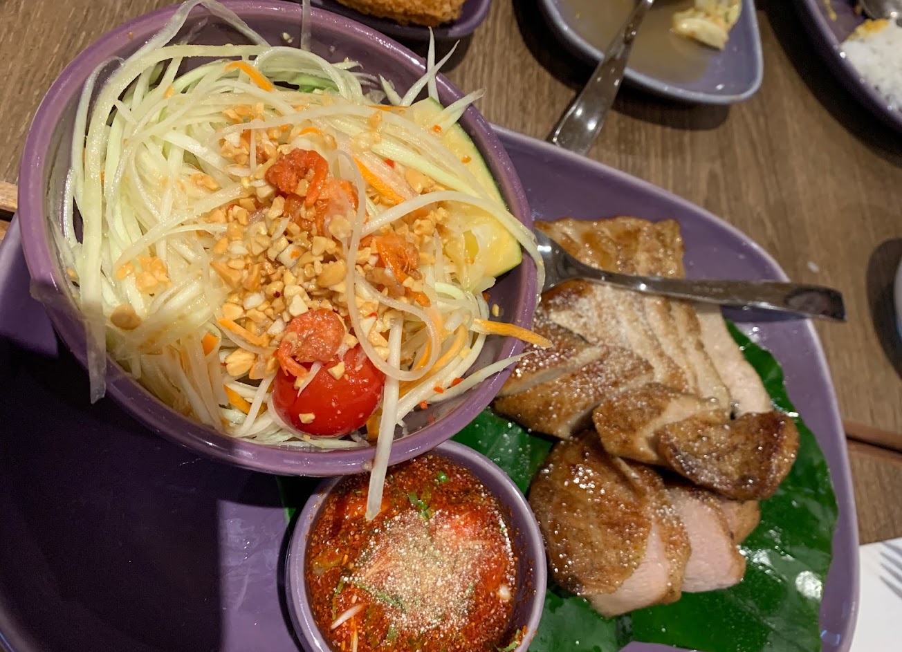 服務員態度很好,碗盤都同一是紫色的很特別。料理也很好吃,很符合泰式料理的口味。