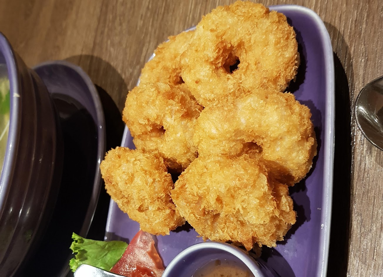 東西很不錯吃喔? 蝦捲圈及沾醬尤其是令人驚艷?喔 …