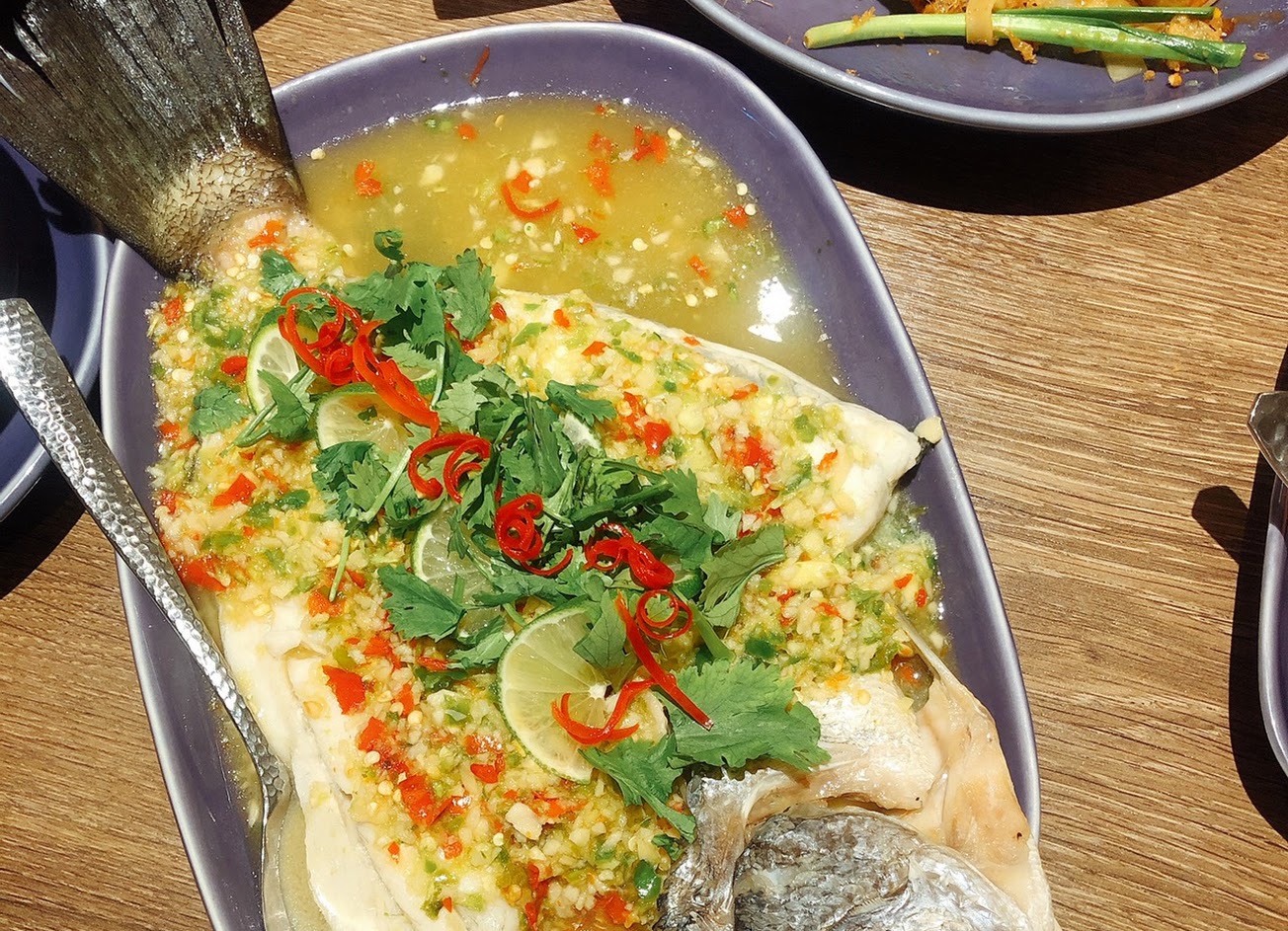 料理普普沒有在泰國吃的那麼道地感覺少了很多辛香提味的特殊食材,可能是因為有些泰國食材佐料比較特殊的關係,多少有配合台灣人的口味做台灣化了,打拋豬有點像台式肉燥..咖哩好像少了幾樣提味香料和在泰國吃得不太一樣,我還是比較喜歡到泰國吃道地的,酸辣魚那一道有比較像正泰國口味。