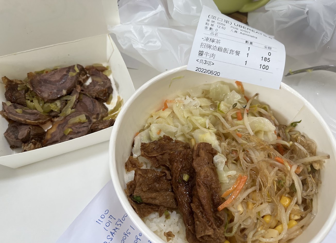 2022-06-10 晚餐時段 外帶 招牌油雞販*2 + 香辣肉醬撈麵*1 口味不錯 是好吃的