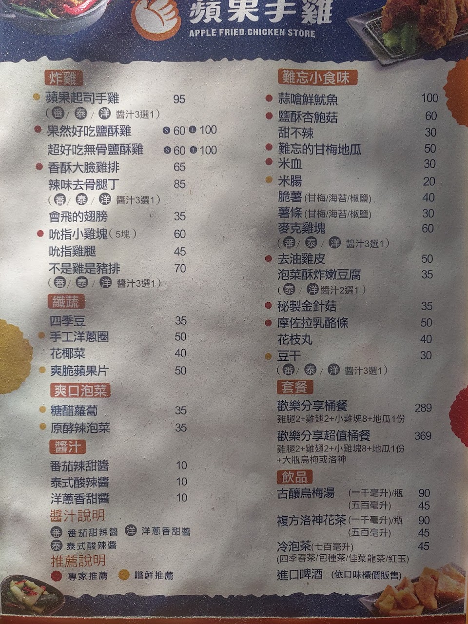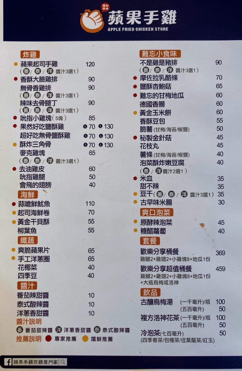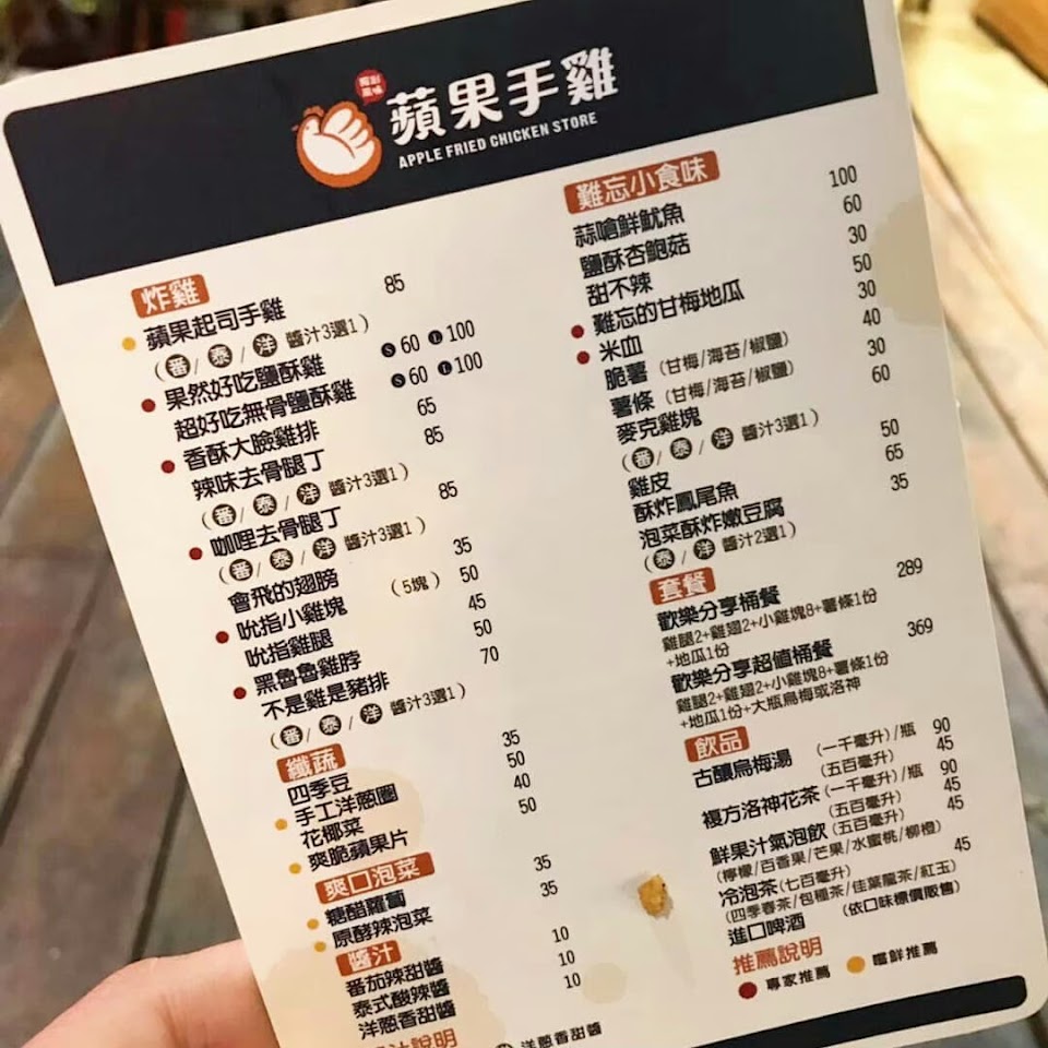 2024最新在地推薦餐廳的菜單_蘋果手雞-炸雞專門家的菜單、圖片