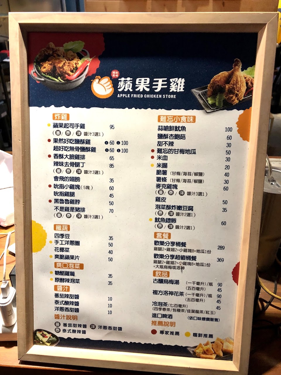 開幕以來有段時間常買,炸皮偏美式,雞肉多汁幼嫩,餐點好吃,招牌為蘋果起司手雞,非常飽足。其它小點、飲品、泡菜,也很好味,互相搭配品嚐解膩好選擇。