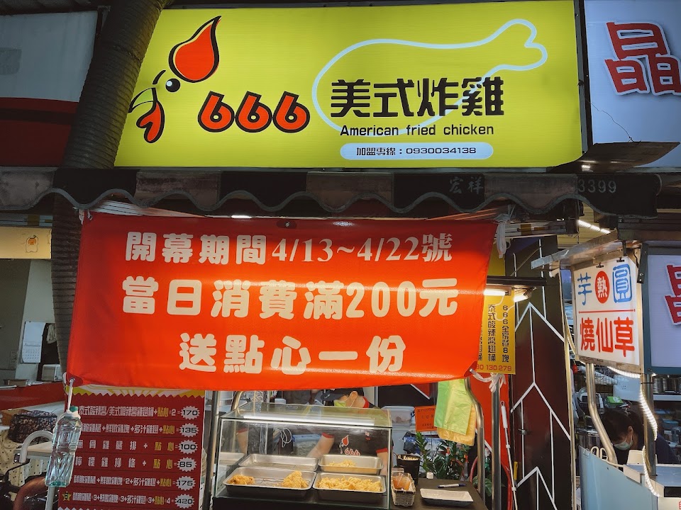以前這家店是「雙姬殿」,兩個女生經營的炸雞店,我和老公常常光顧。自從她們將店盤給別人,就很久沒再買炸雞了。昨天(2023.8月4日)心血來潮,到雙姬殿舊址購買,店名已改為「666美式炸雞」,經營者是兩個男生。買了兩桶全家餐,炸雞很入味,比起拿坡里、麥當勞、胖老爹都毫不遜色,家裡2人4狗,吃的很開心???。加入LINE才發現有優惠,打算今天再回購~看來,以後也會變成「666美式炸雞」的常客了!