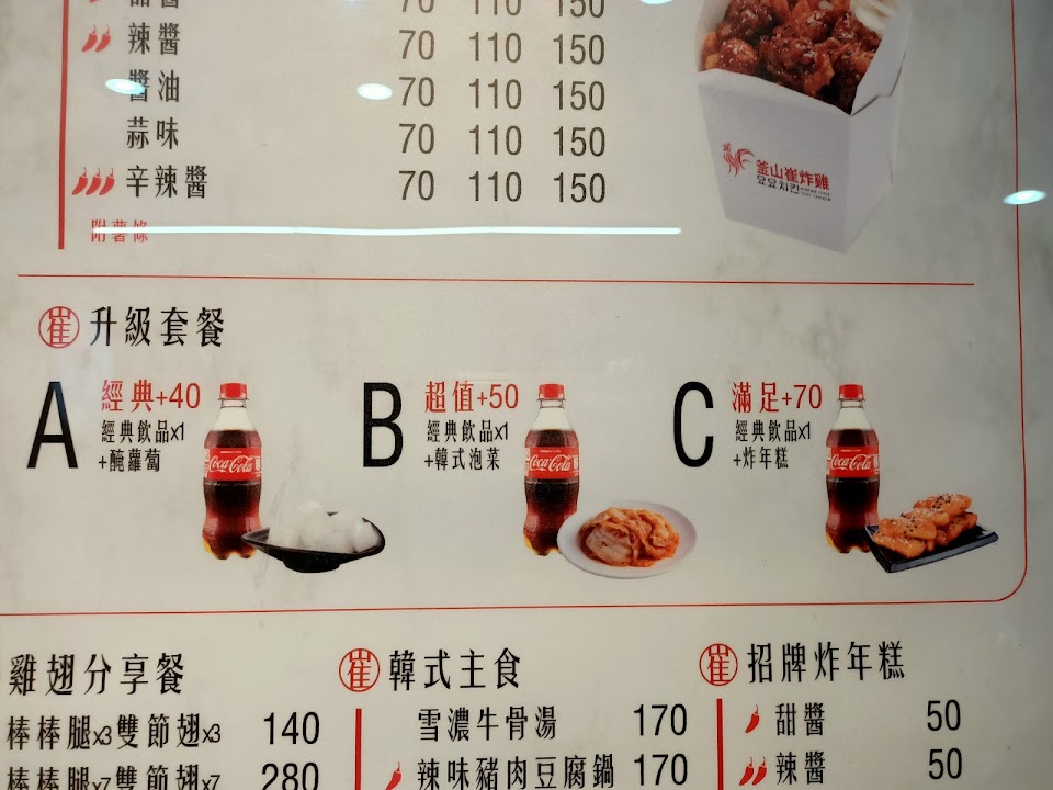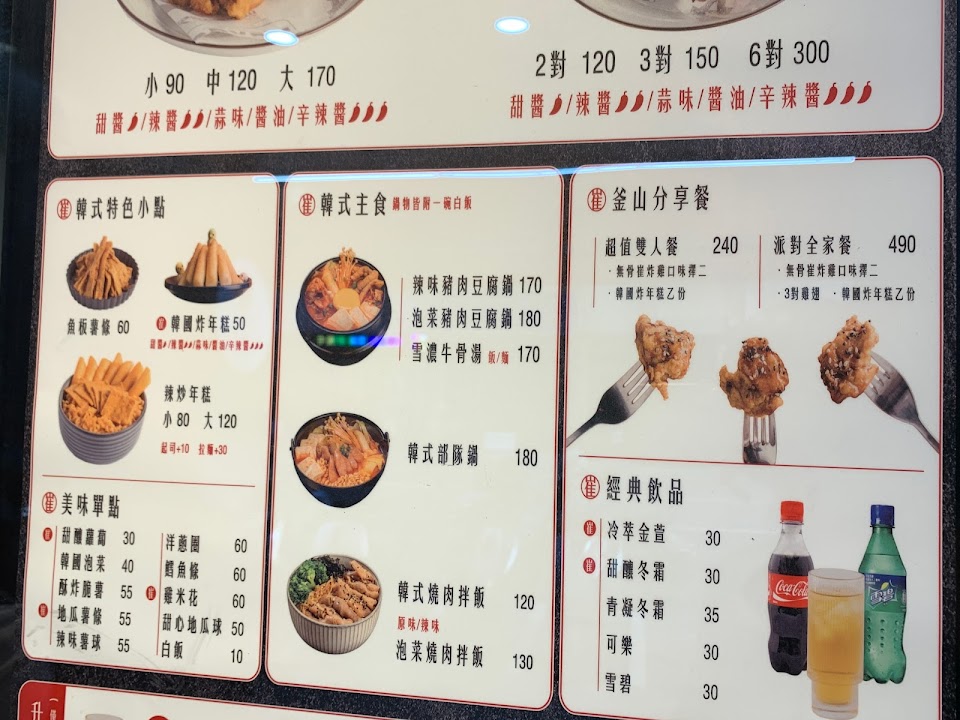 2024最新在地推薦餐廳的菜單_釜山崔炸雞-台中漢口店的菜單、圖片