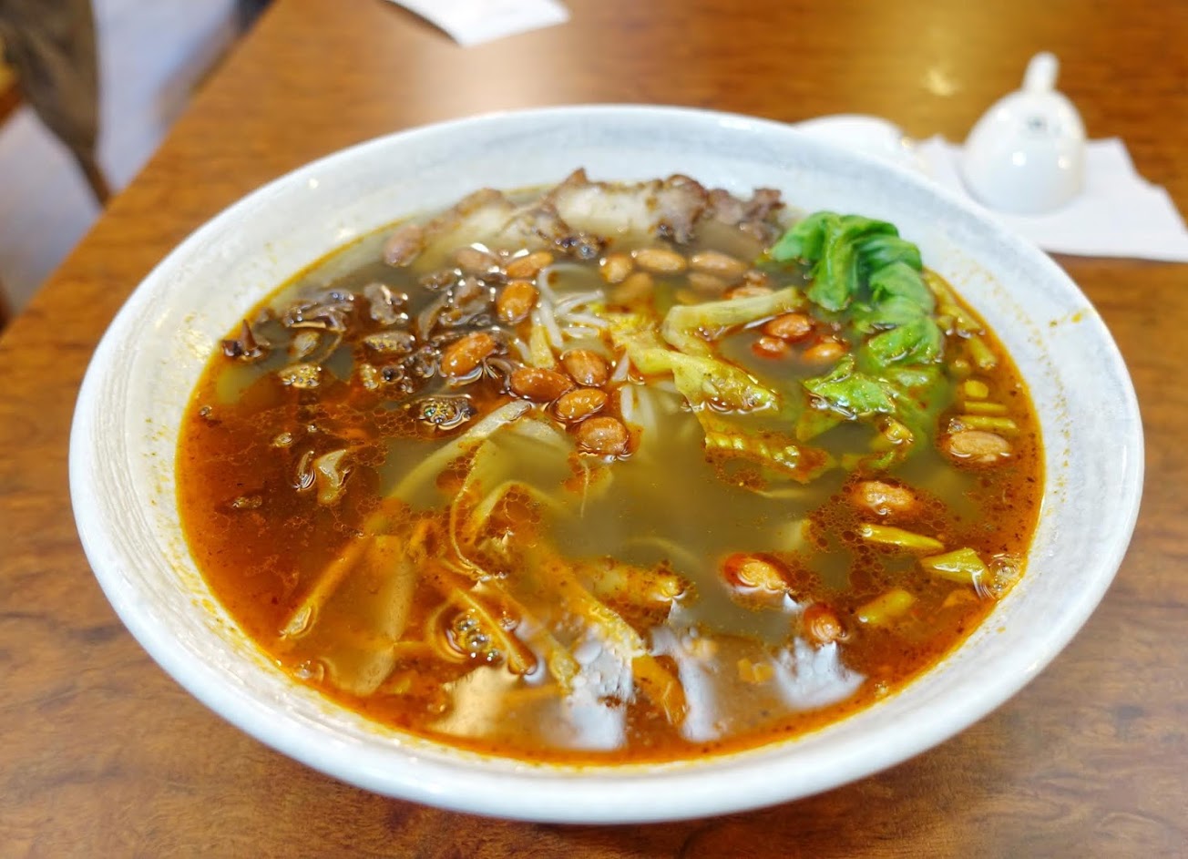 不過店家的湯頭顏色很清 沒有太多的辣油 老闆說因為台灣人吃比較清淡 所以有特別調整過 反而我更喜歡這樣的味道 過度的調味有時候都吃不到食材的原味