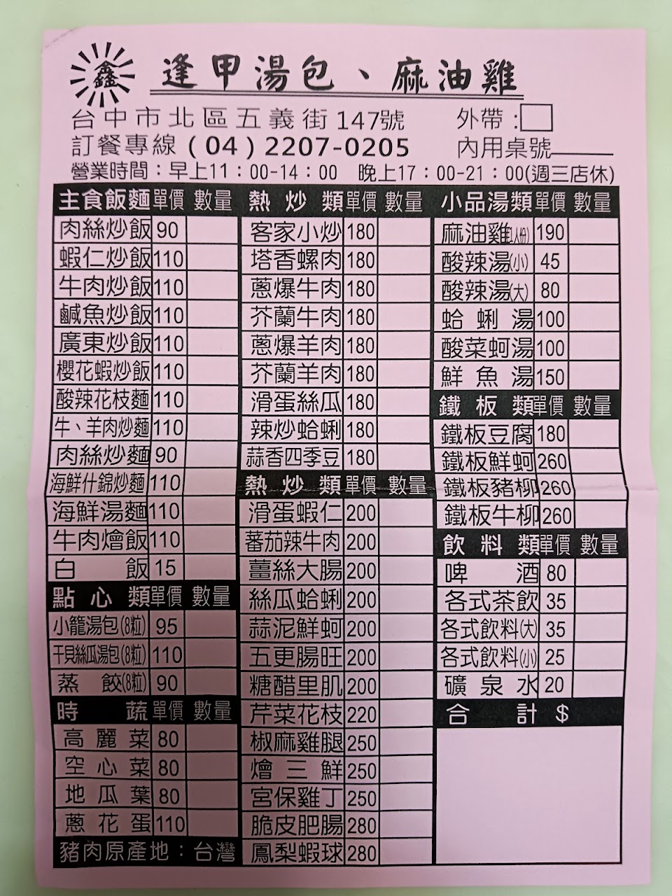 2024最新在地推薦餐廳的菜單_逢甲湯包麻油雞的菜單、圖片