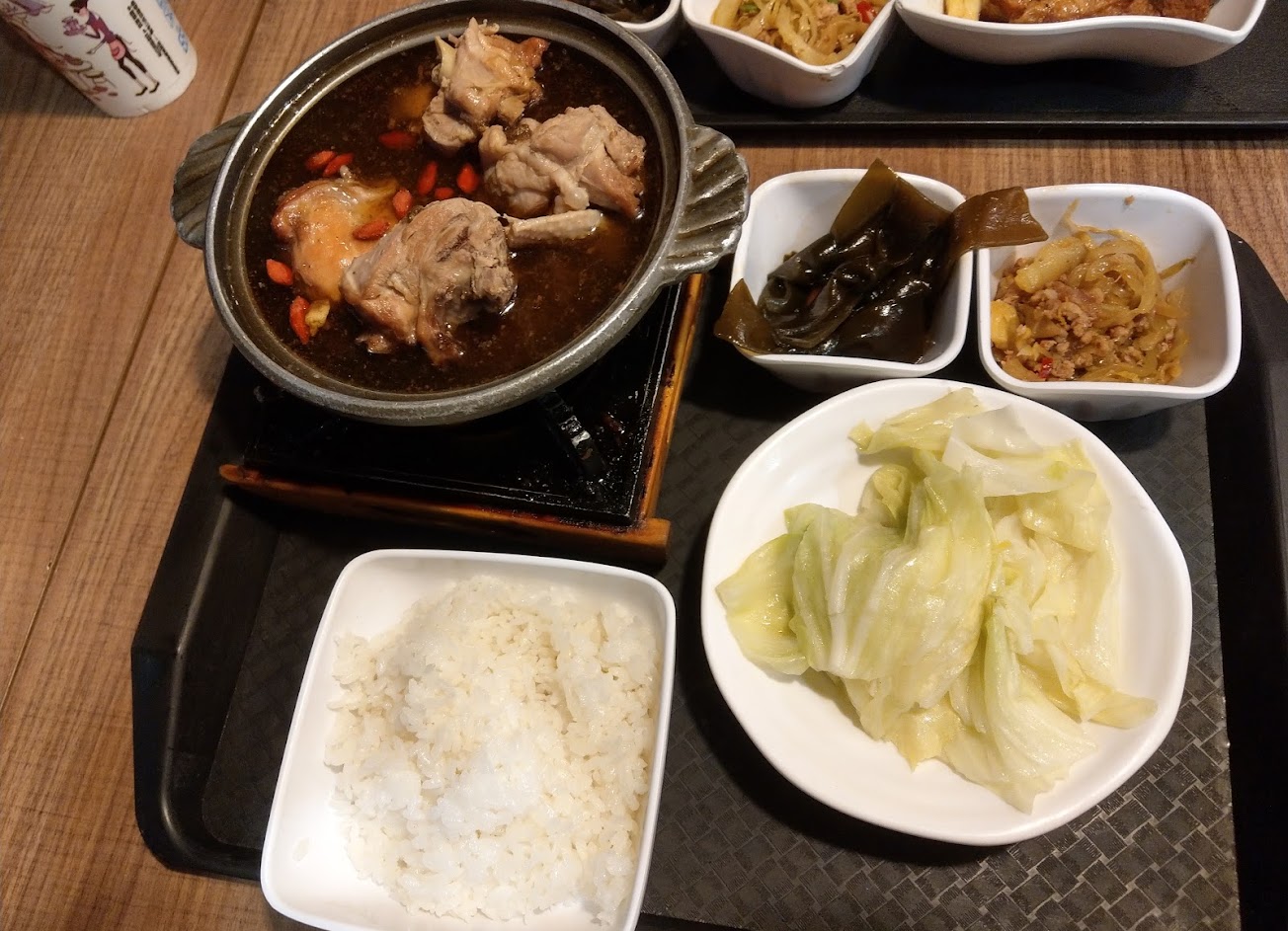 A特餐(封肉飯)$150 C特餐(麻油雞)$200 1. 有飲料,紅茶、無糖綠、熱湯,一樓自取 2. 上菜速度快,不論是主餐還是小菜的份量都不少 3. 麻油雞酒味夠,血糕好吃! 4. 封肉搭配筍乾也很夠味 5. 可惜咖哩跟麵線賣完惹QQ