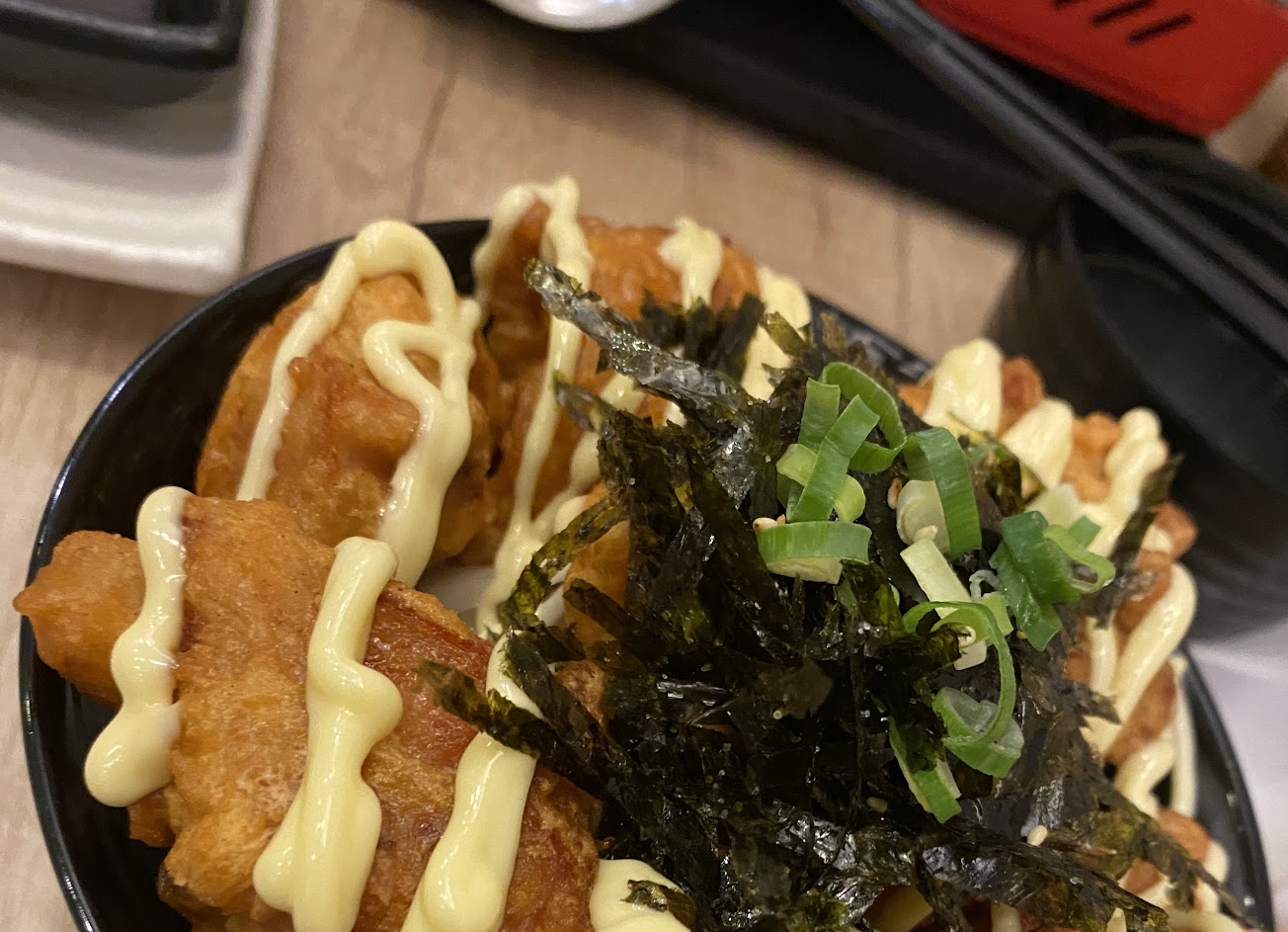 炸雞飯這個也很好吃記得應該是點明太子的 肉很嫩很鮮甜,然後有免費的湯可以喝