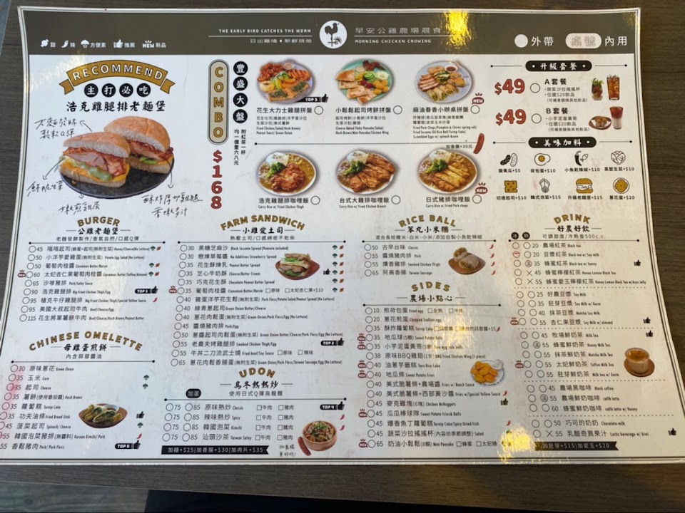 2024最新在地推薦餐廳的菜單_早安公雞農場晨食-篤行店的菜單、圖片