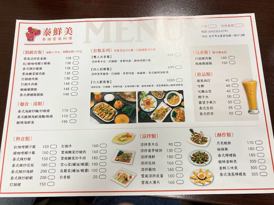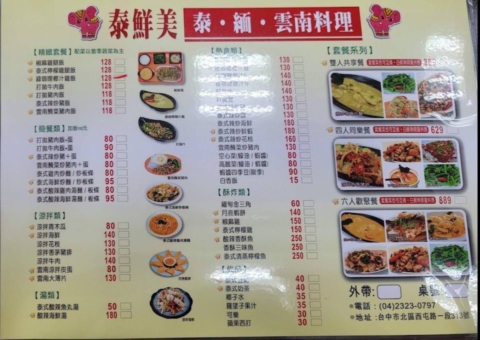 2024最新在地推薦餐廳的菜單_泰鮮美【泰式料理|西屯路美食|晚餐推薦|雲南料理|異國美食|年菜推薦】的菜單、圖片